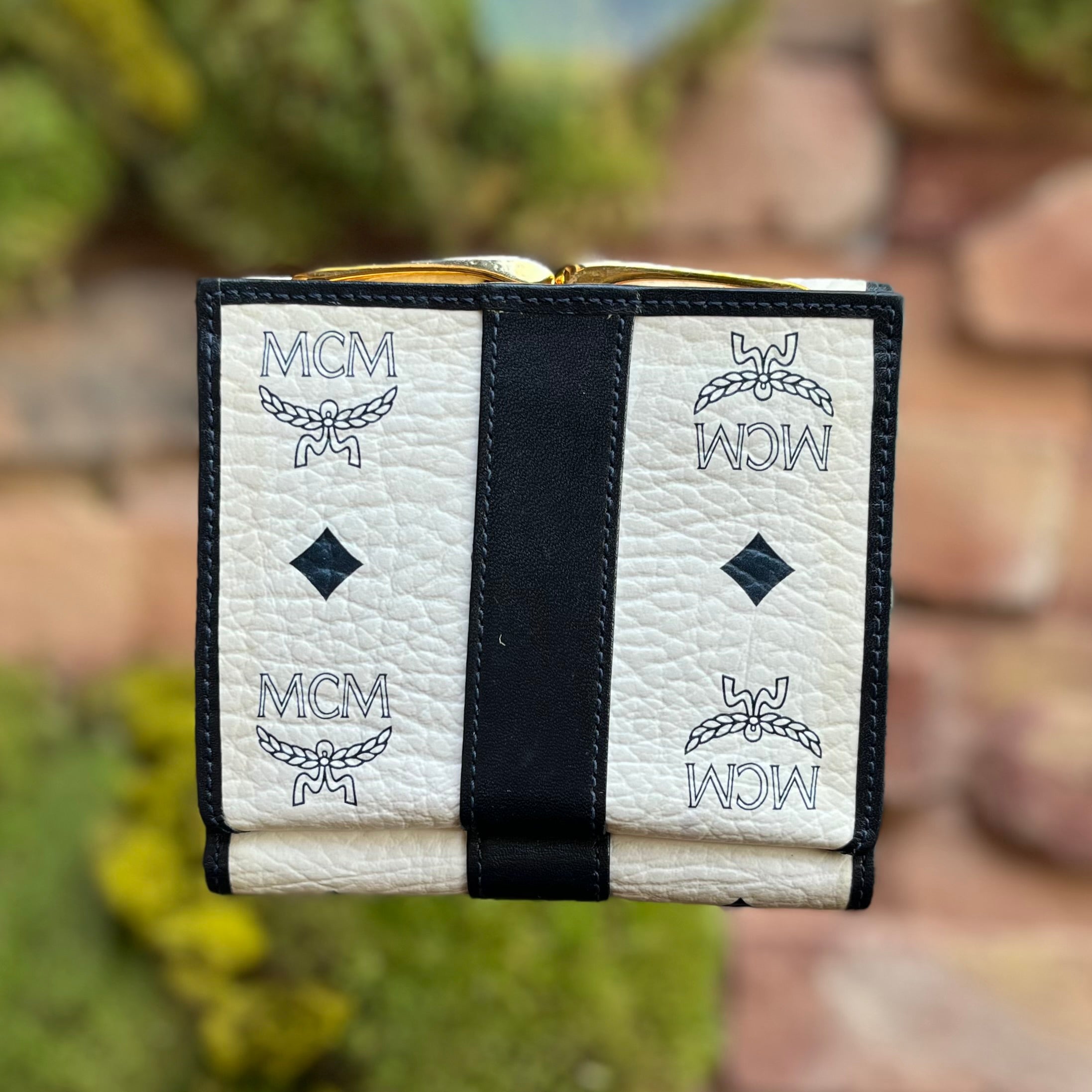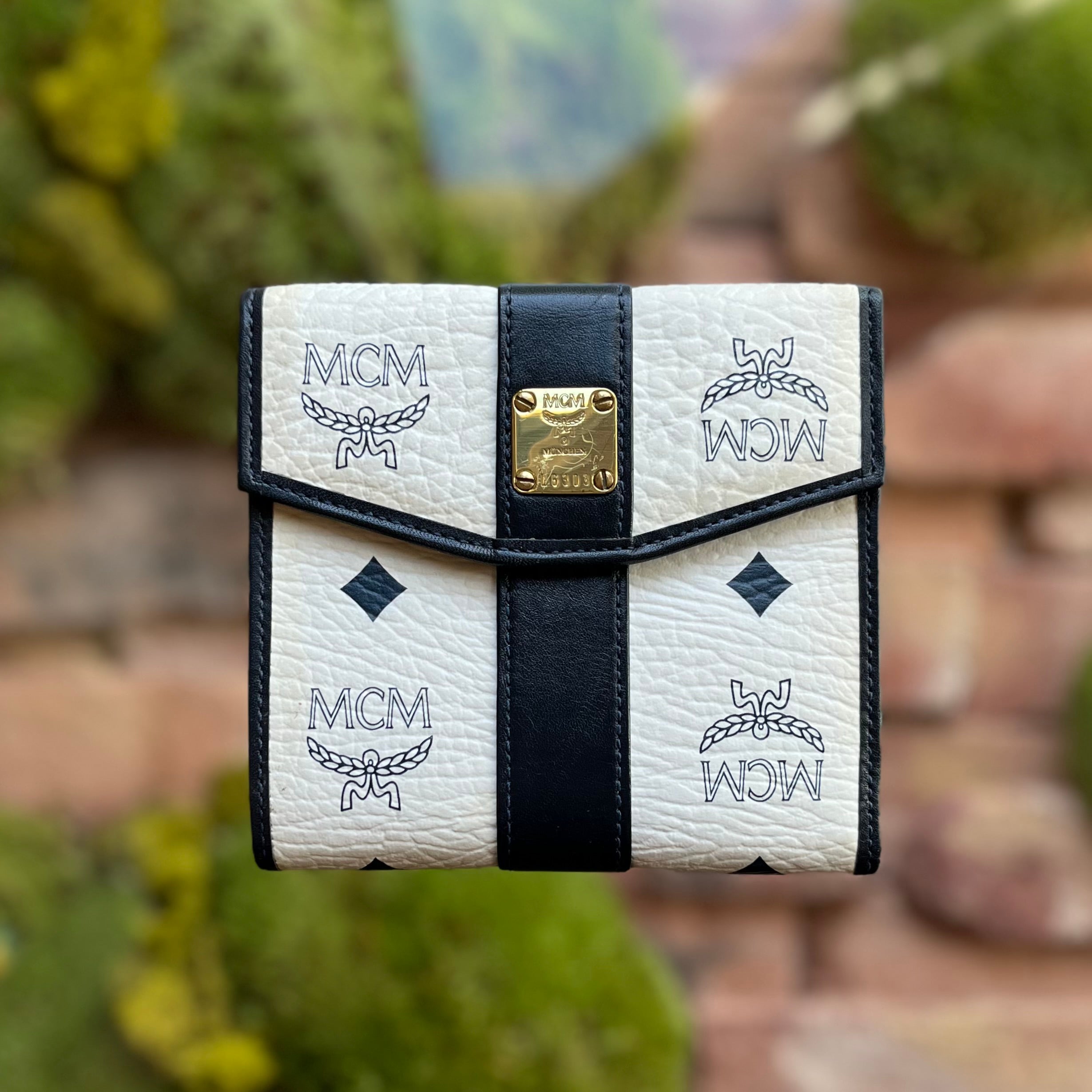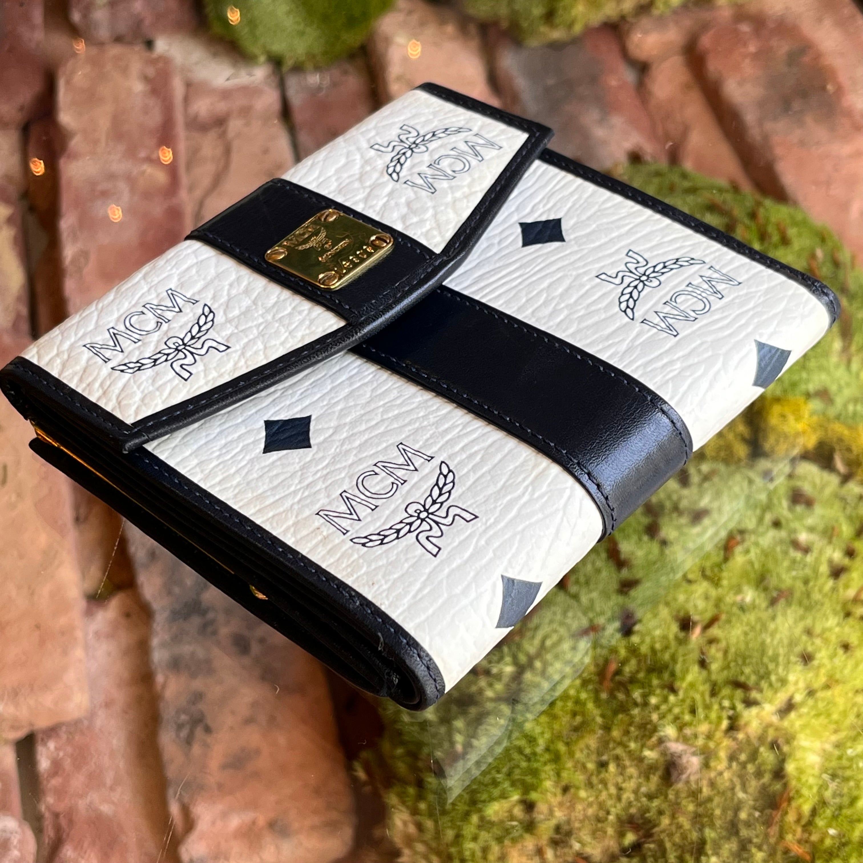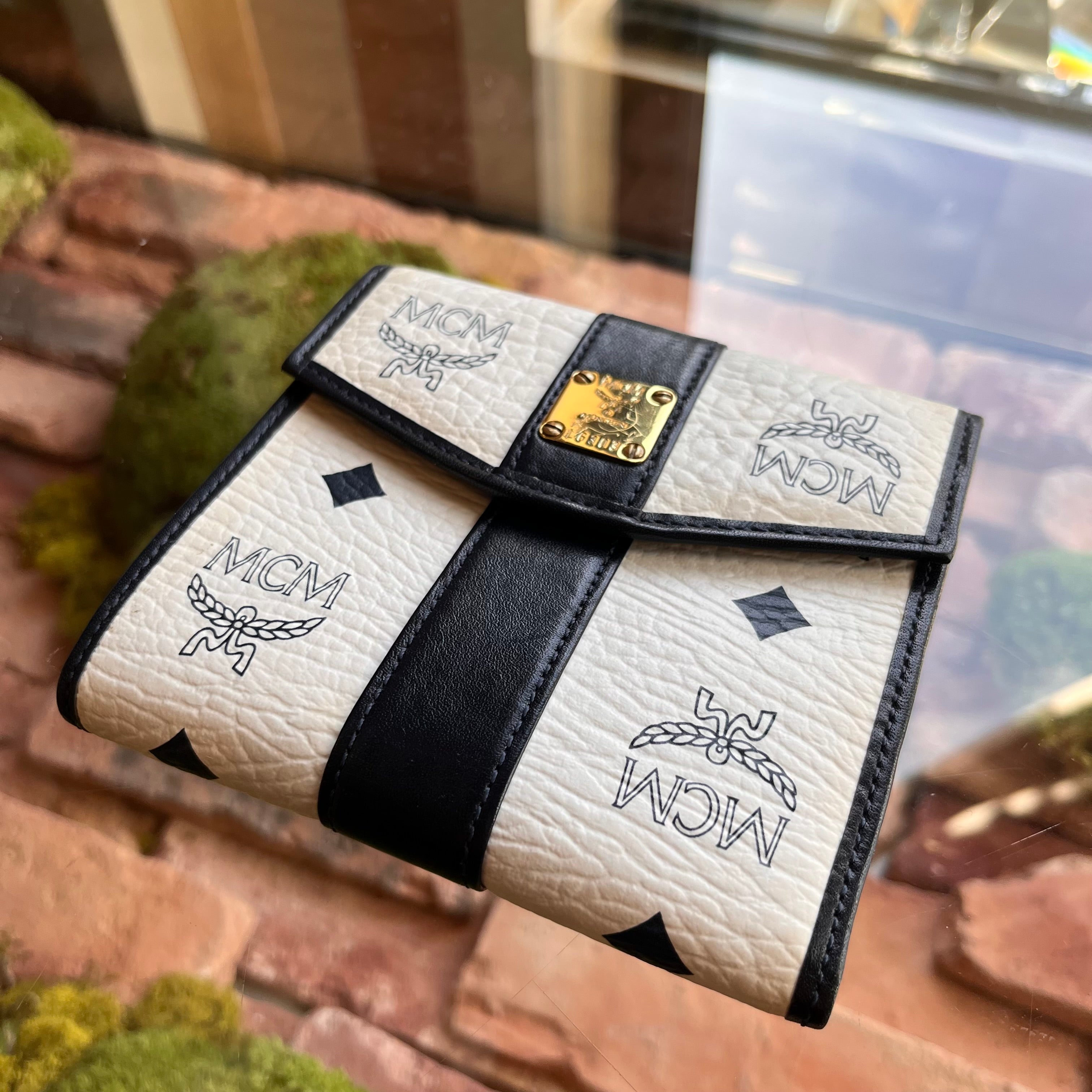 MCM Kisslock Small White Black Vintage Wallet