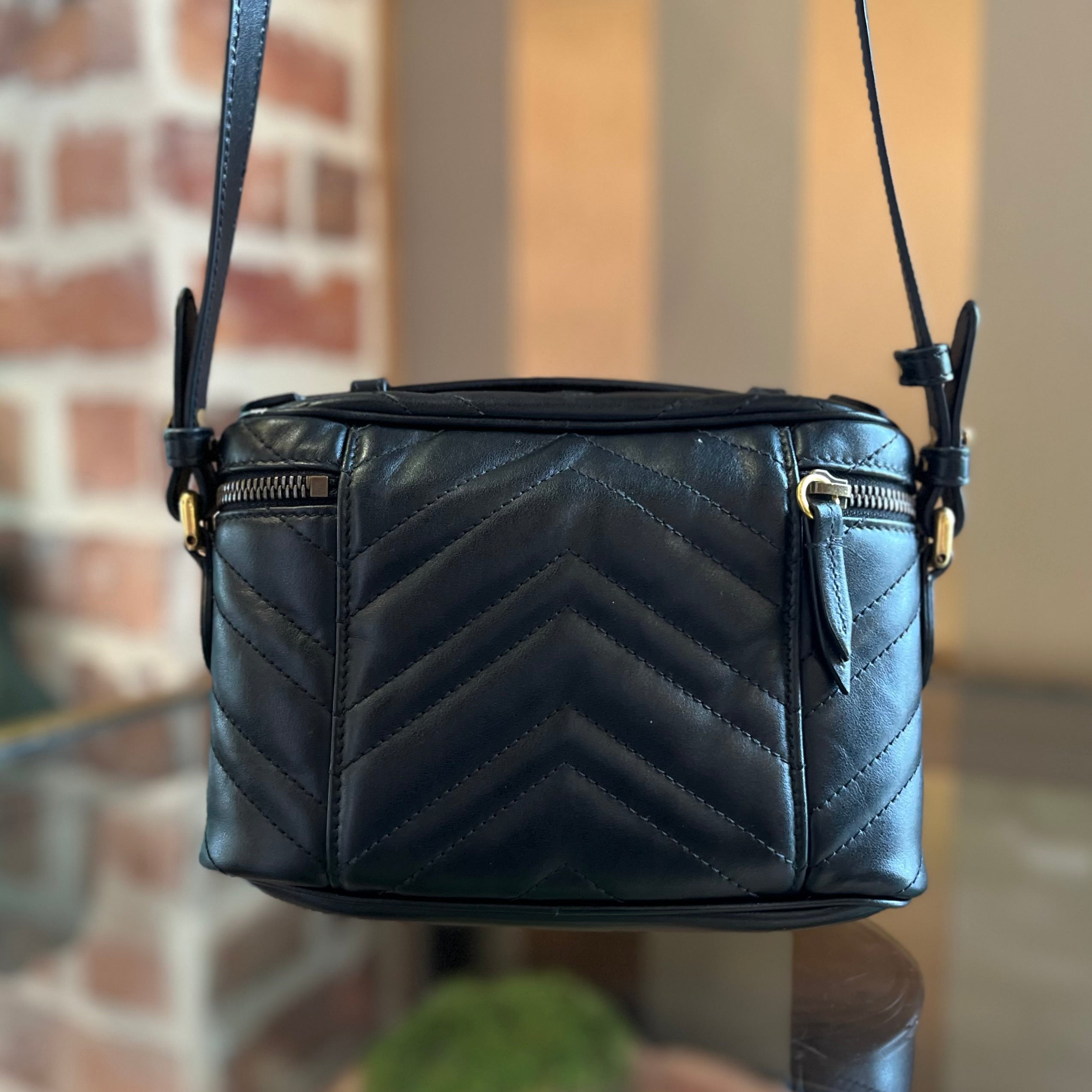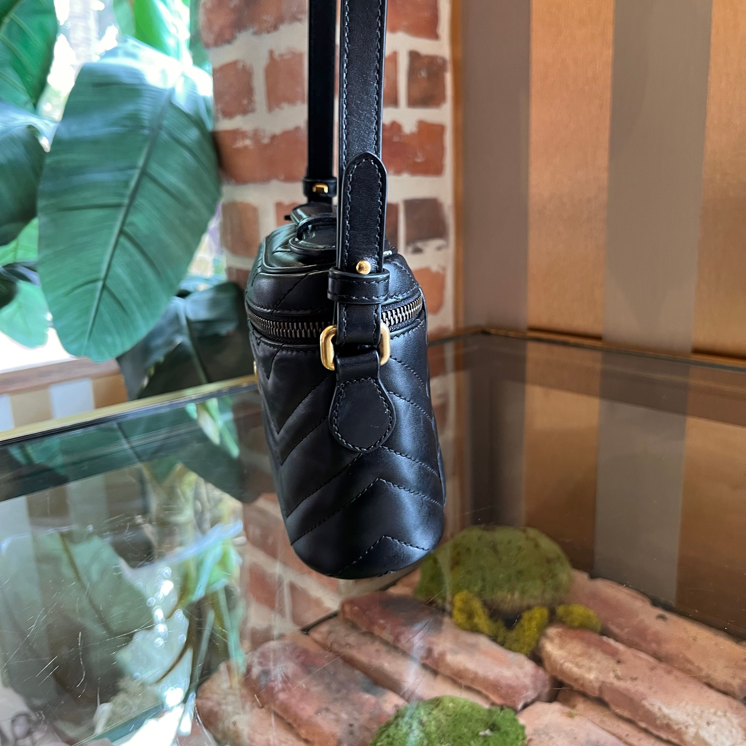 GUCCI GG Marmont Vanity Black Matelassé Leather Crossbody Bag