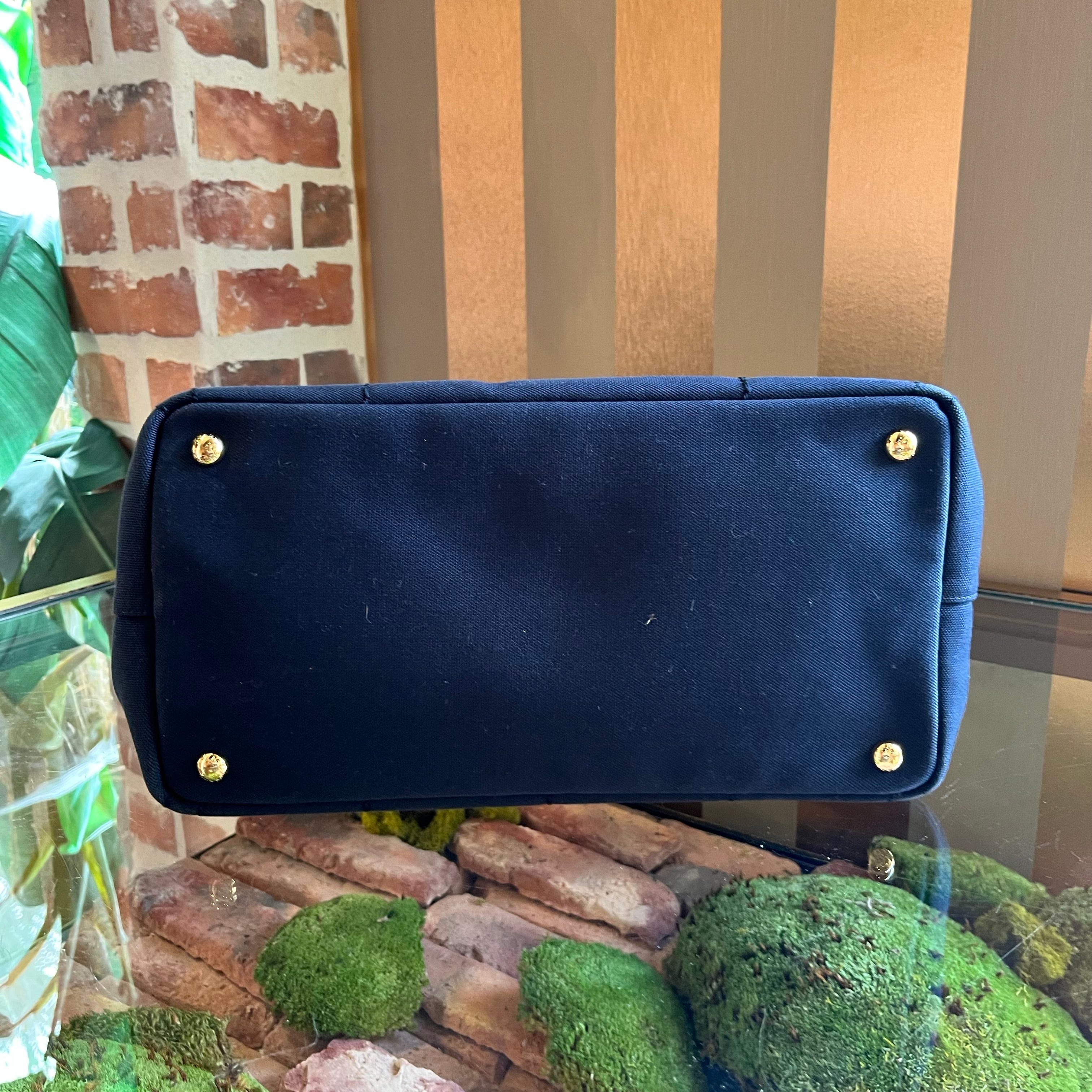 PRADA Jardinière Large Navy Blue Cotton Canvas Tote