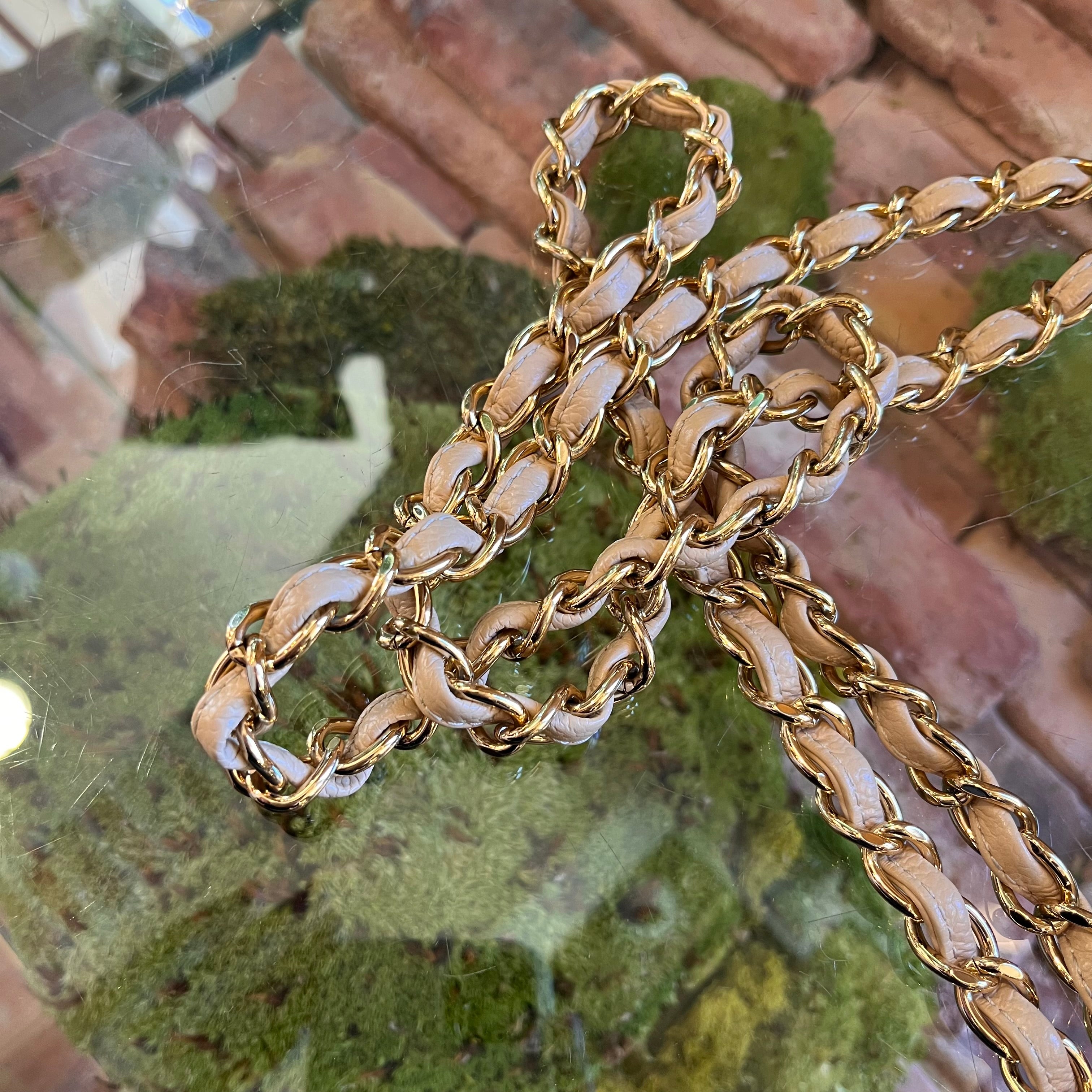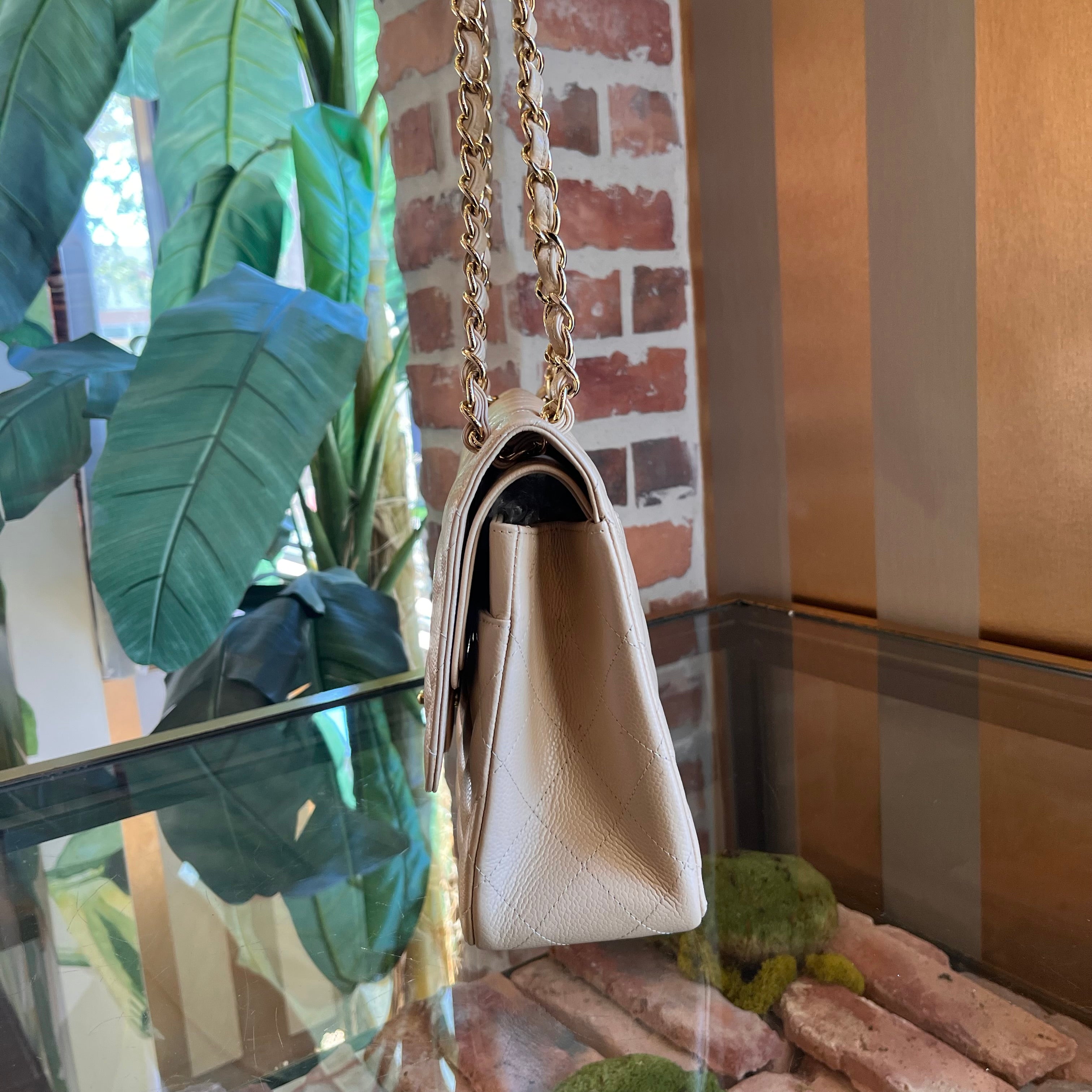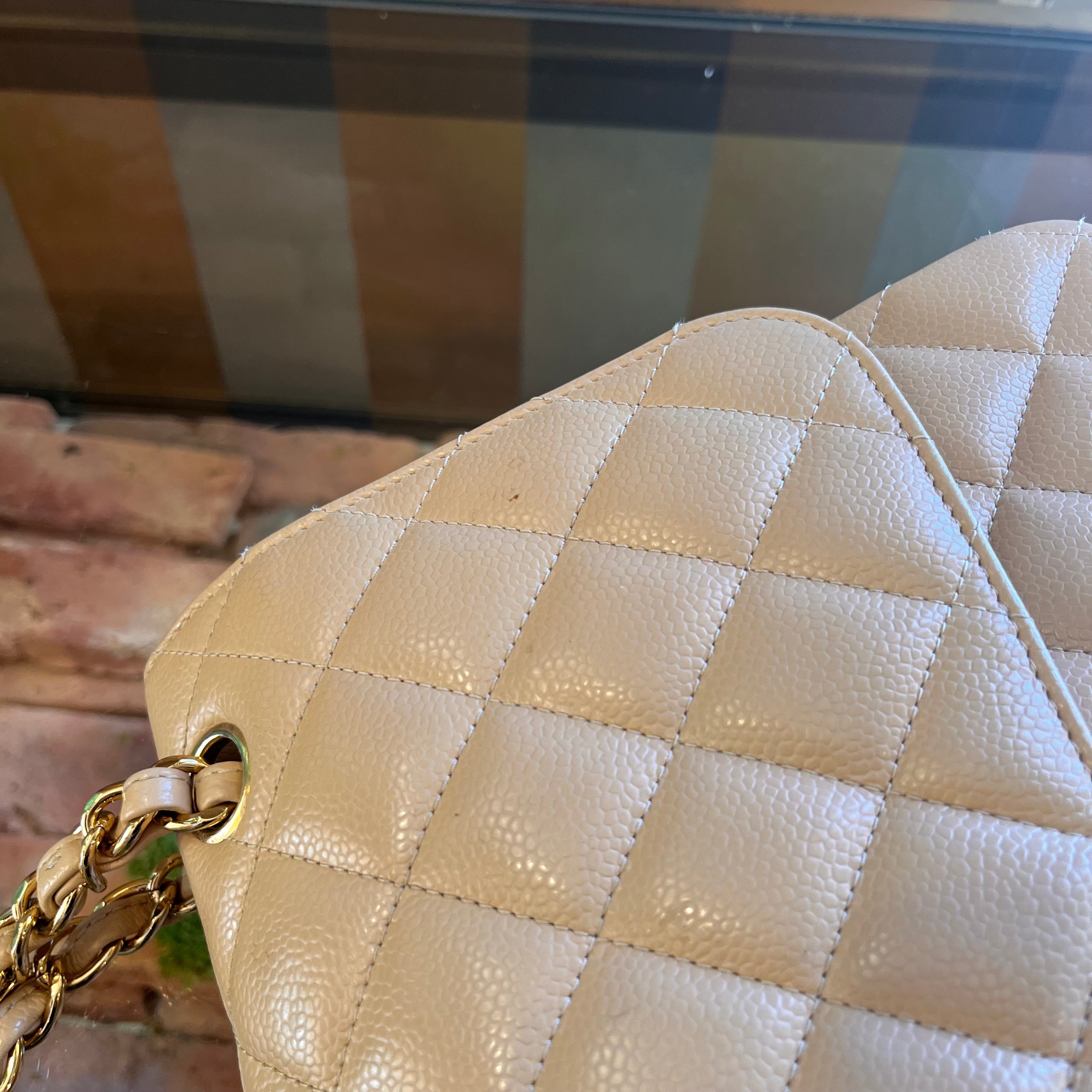 CHANEL Classic Jumbo Double Flap Beige Quilted Caviar Shoulder Bag