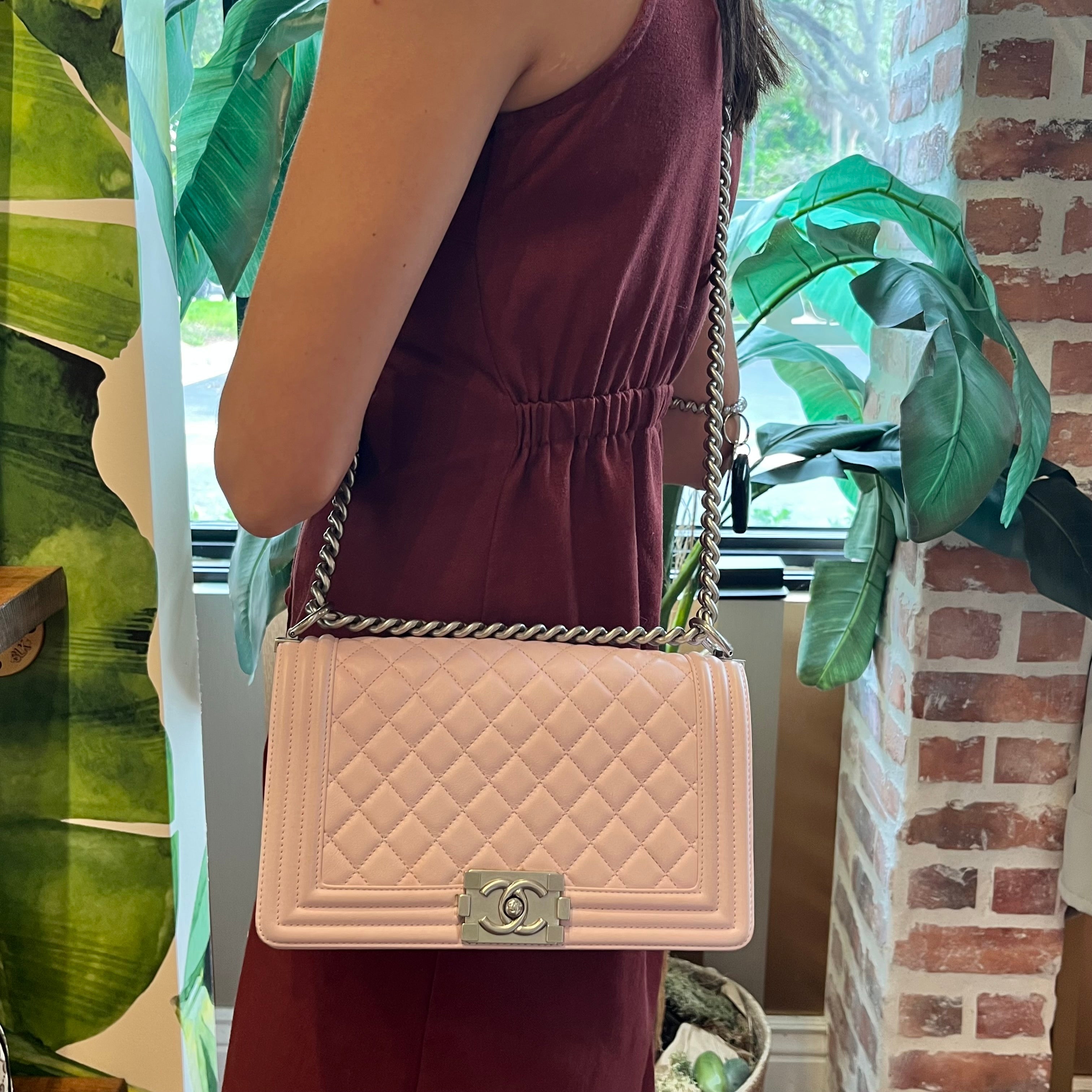 CHANEL Boy Bag Old Medium Baby Pink Calfskin Shoulder Bag