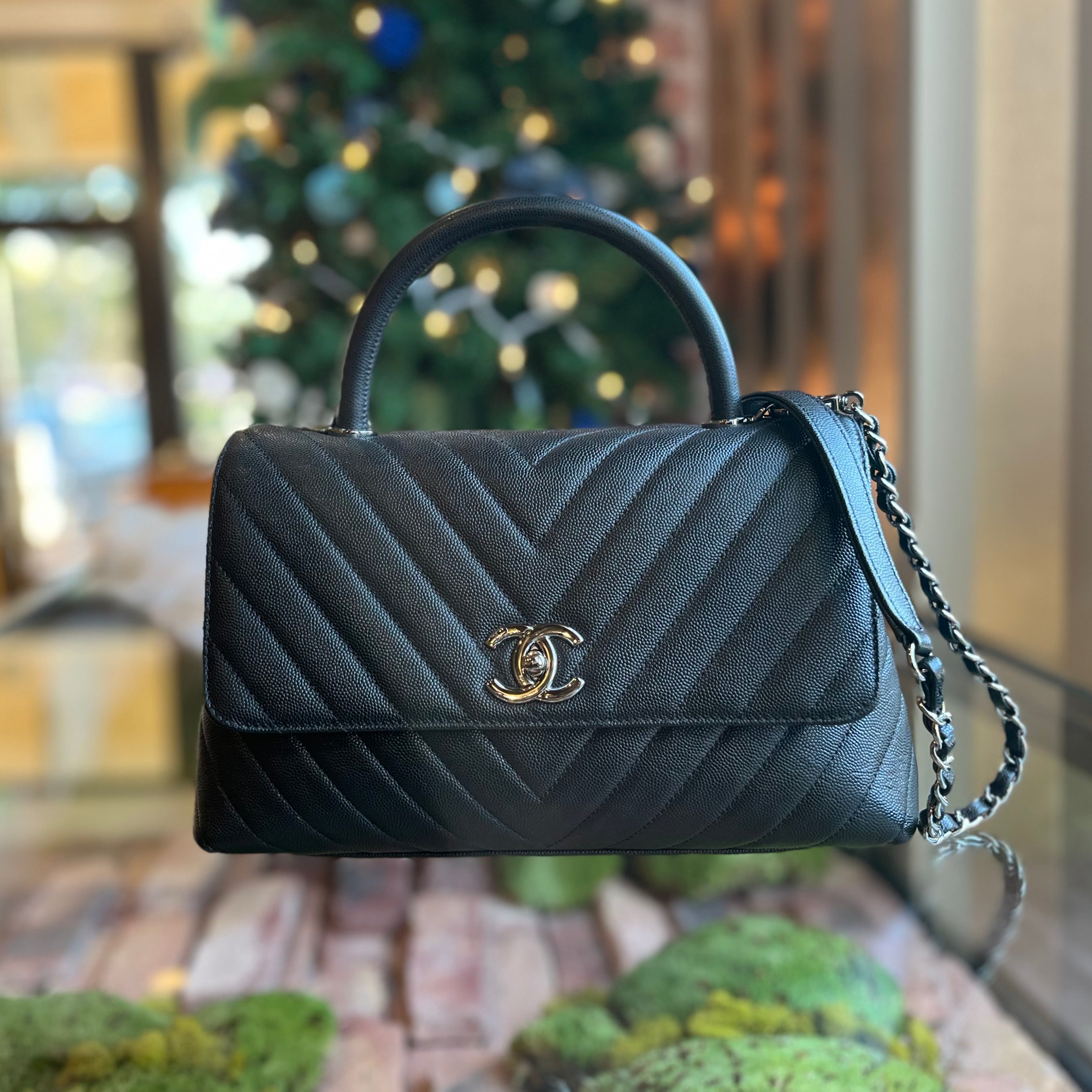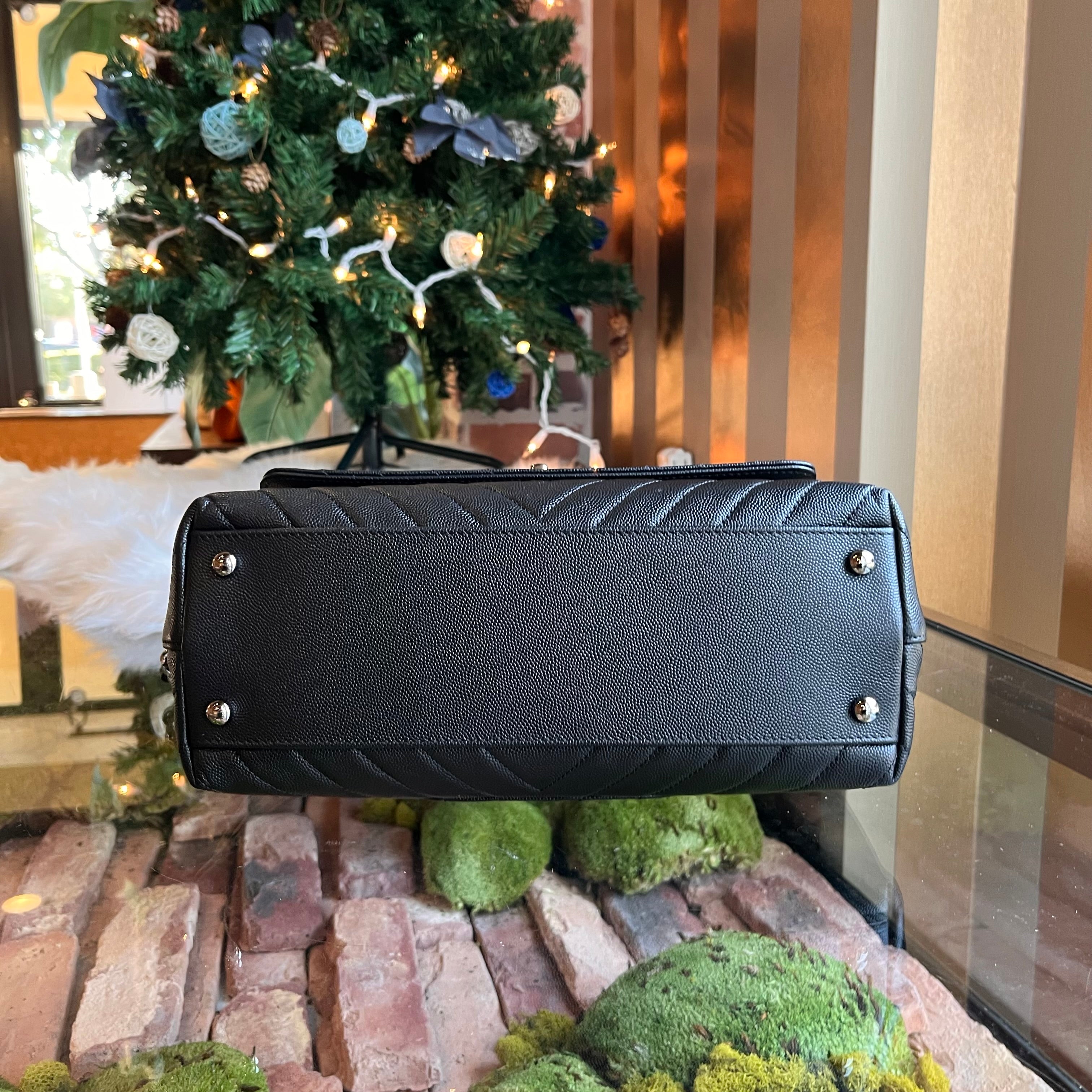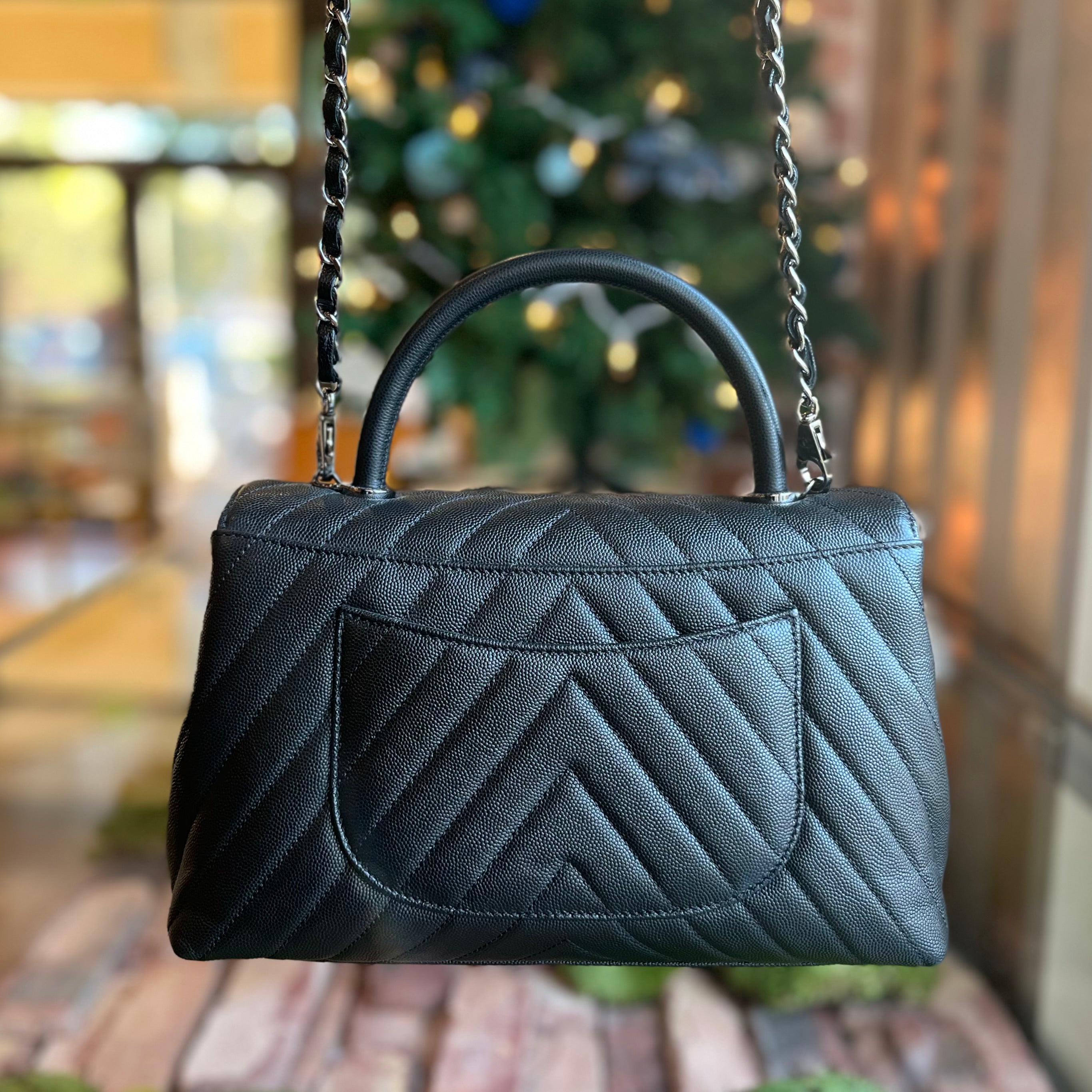 CHANEL Coco Handle Flap Small Black Caviar Chevron Quilted Shoulder Bag
