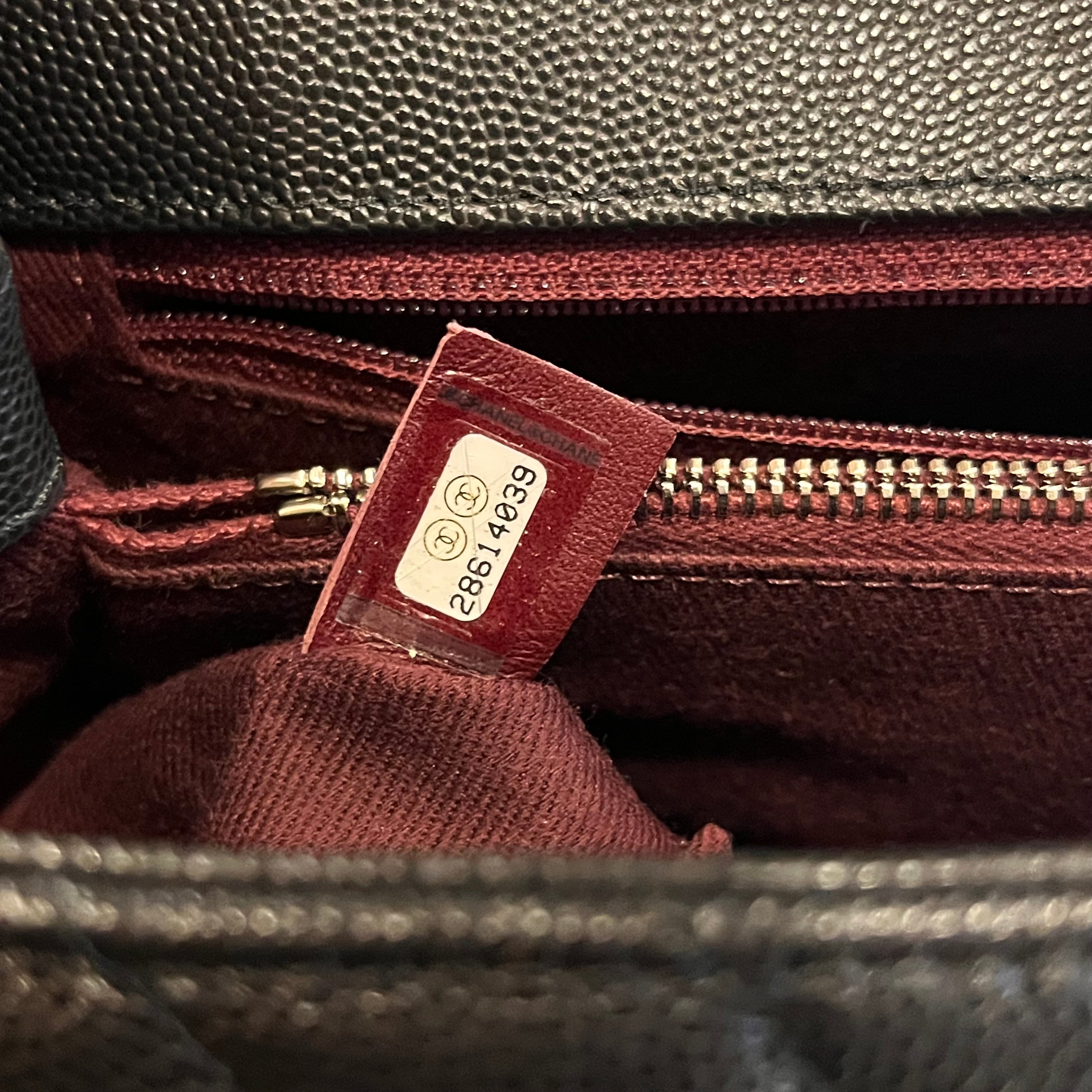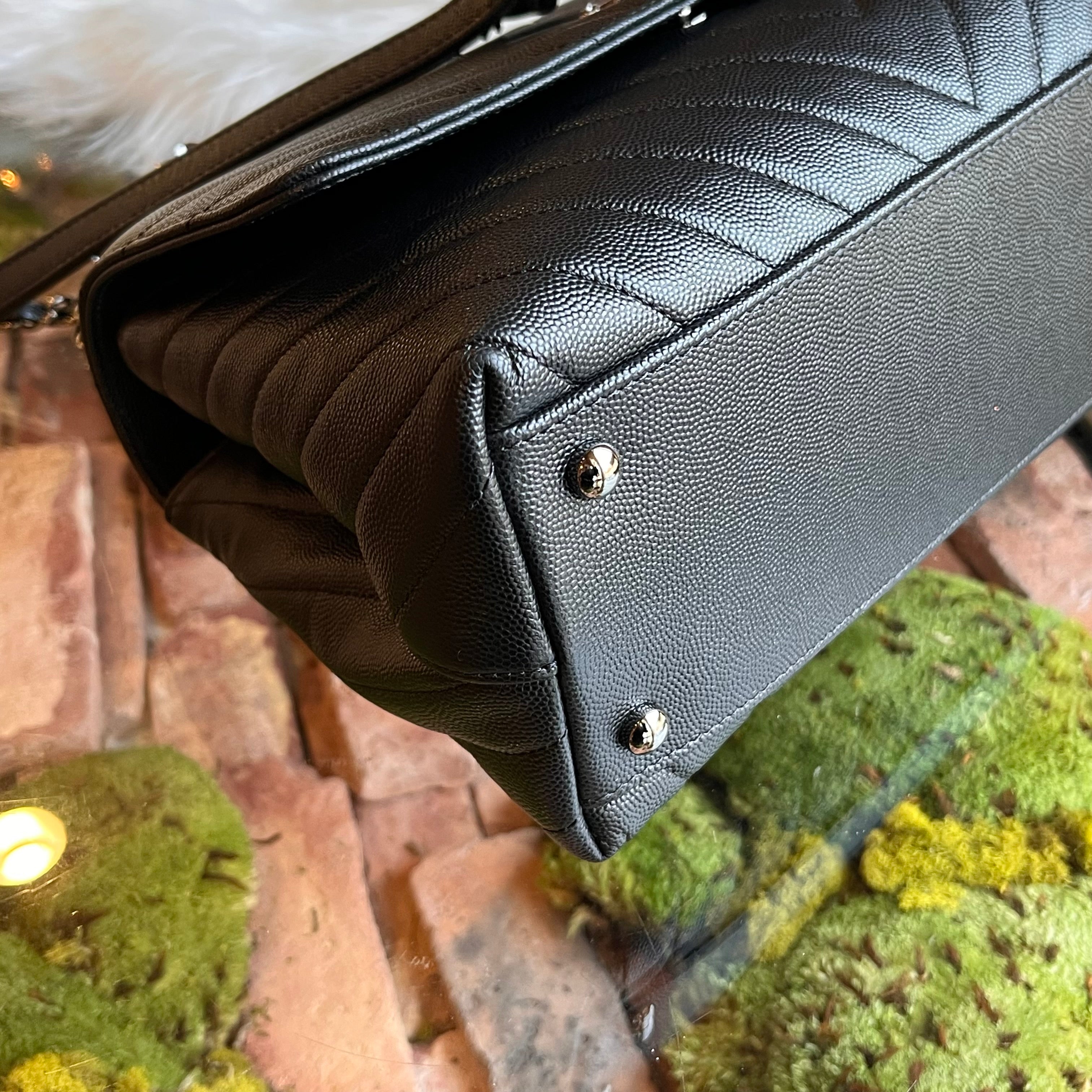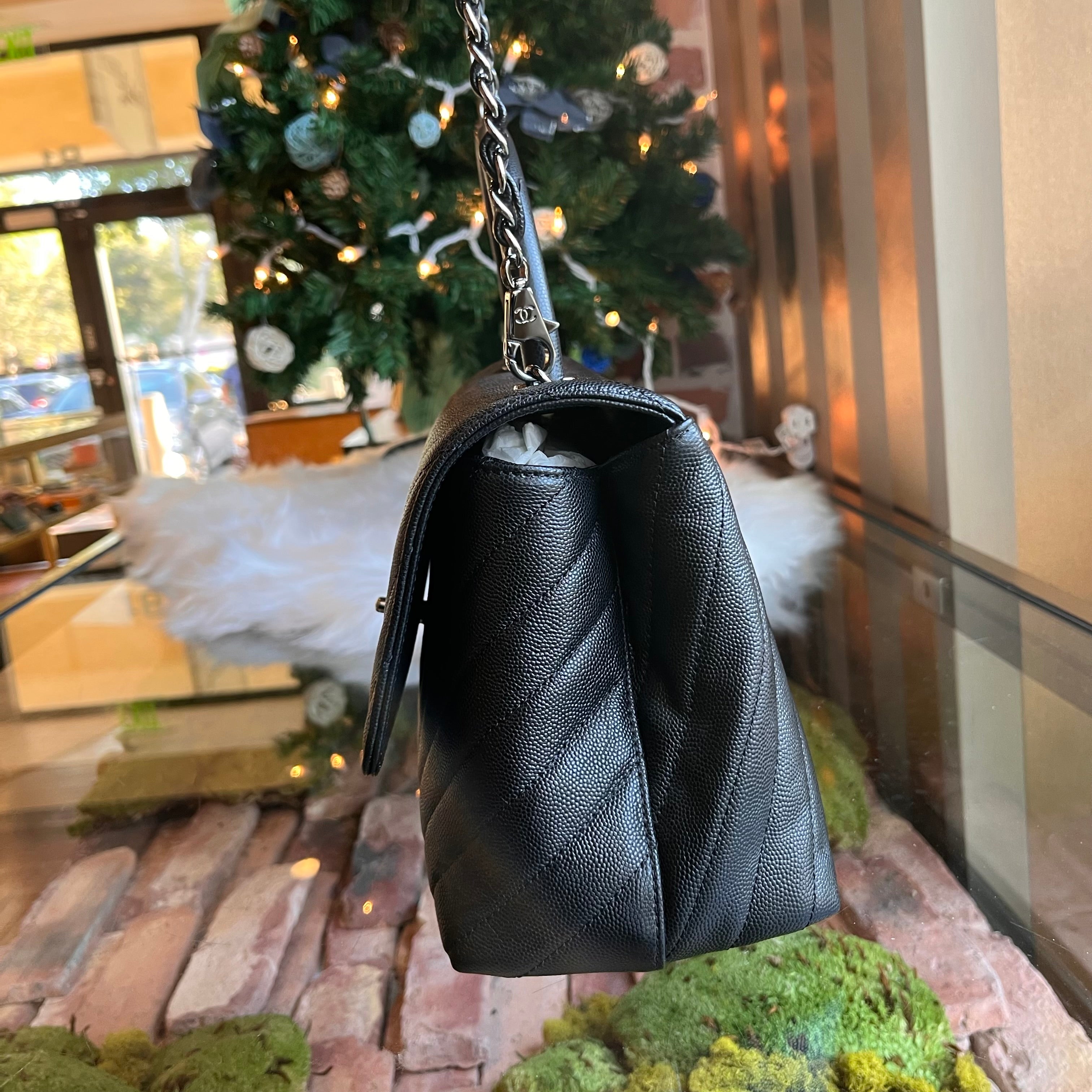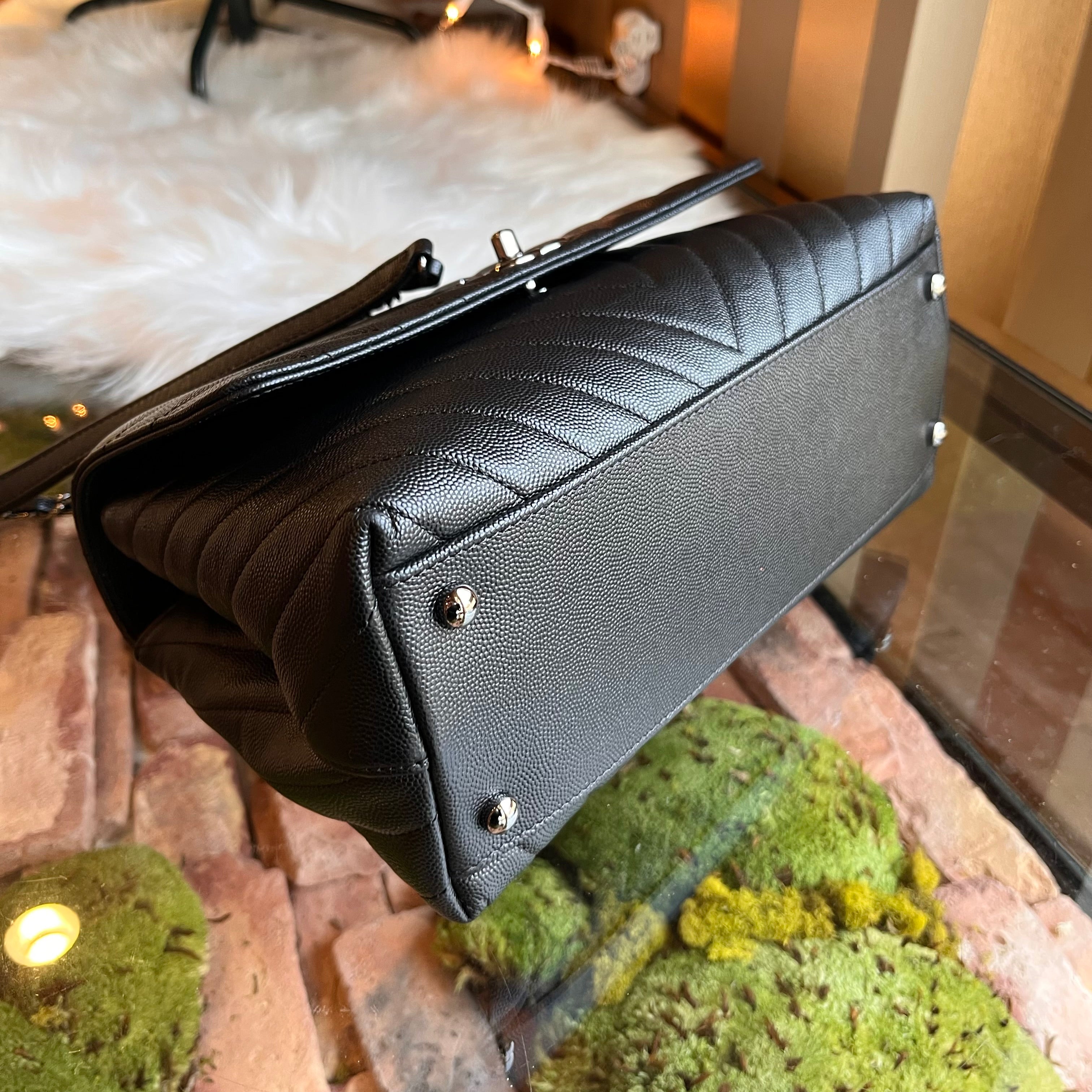 CHANEL Coco Handle Flap Small Black Caviar Chevron Quilted Shoulder Bag