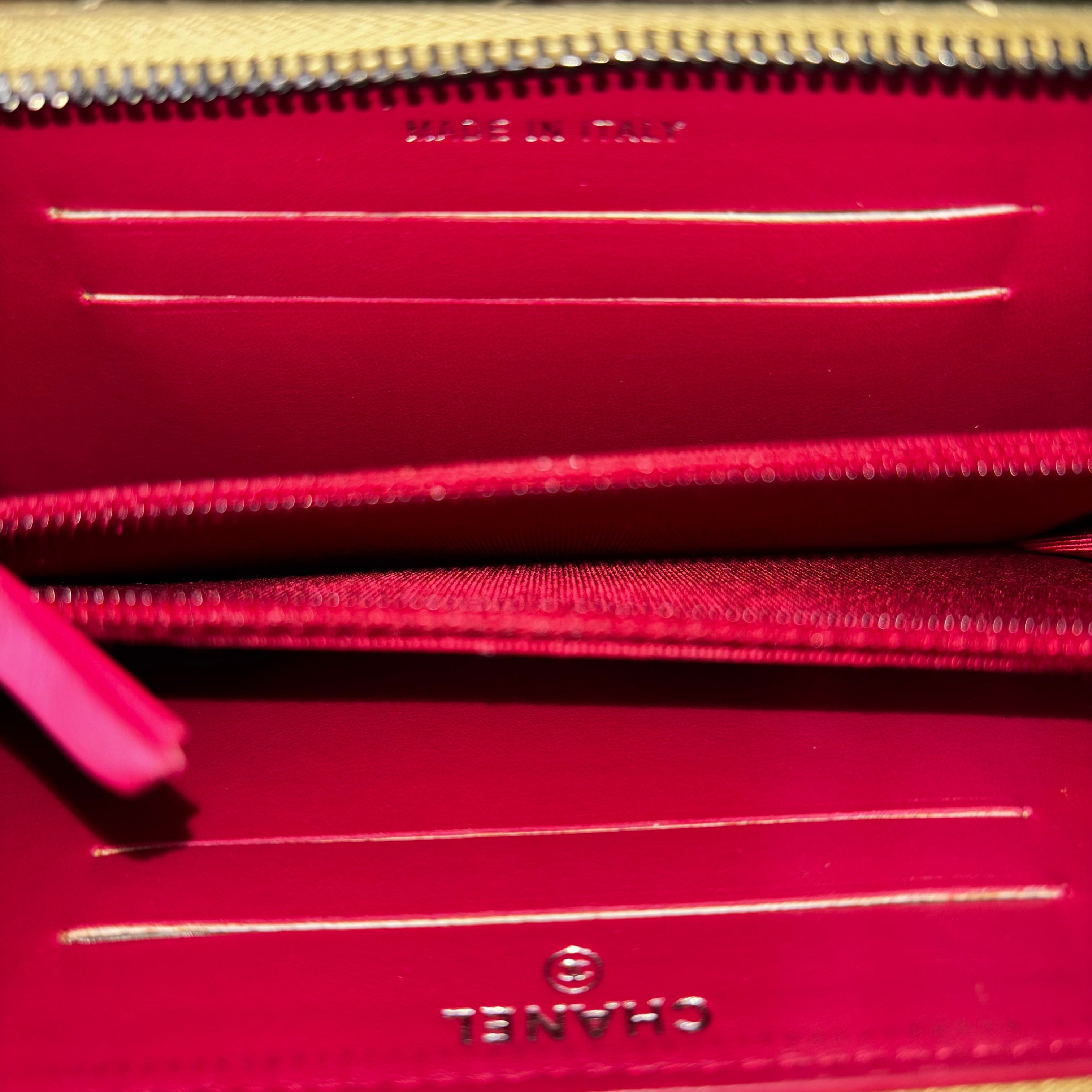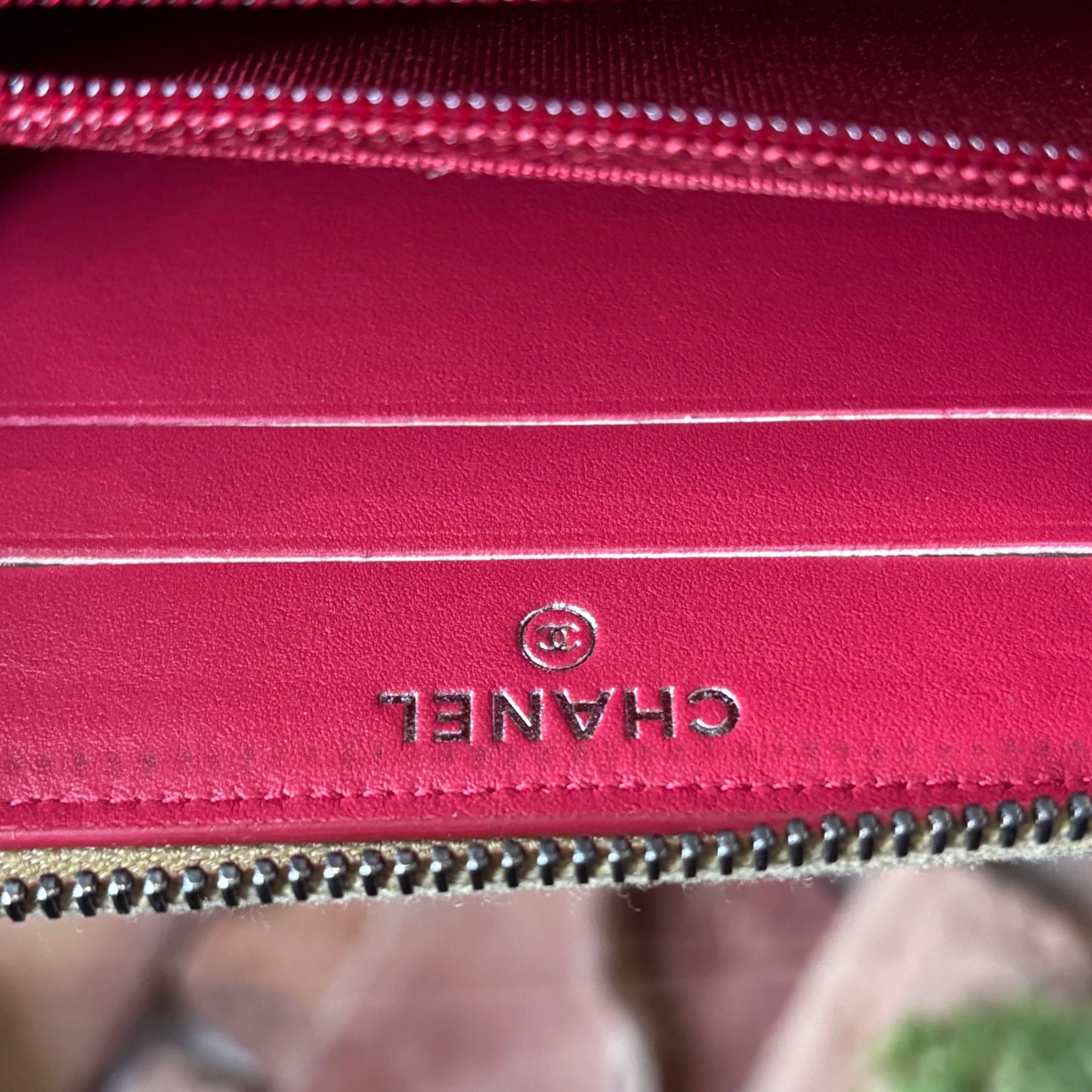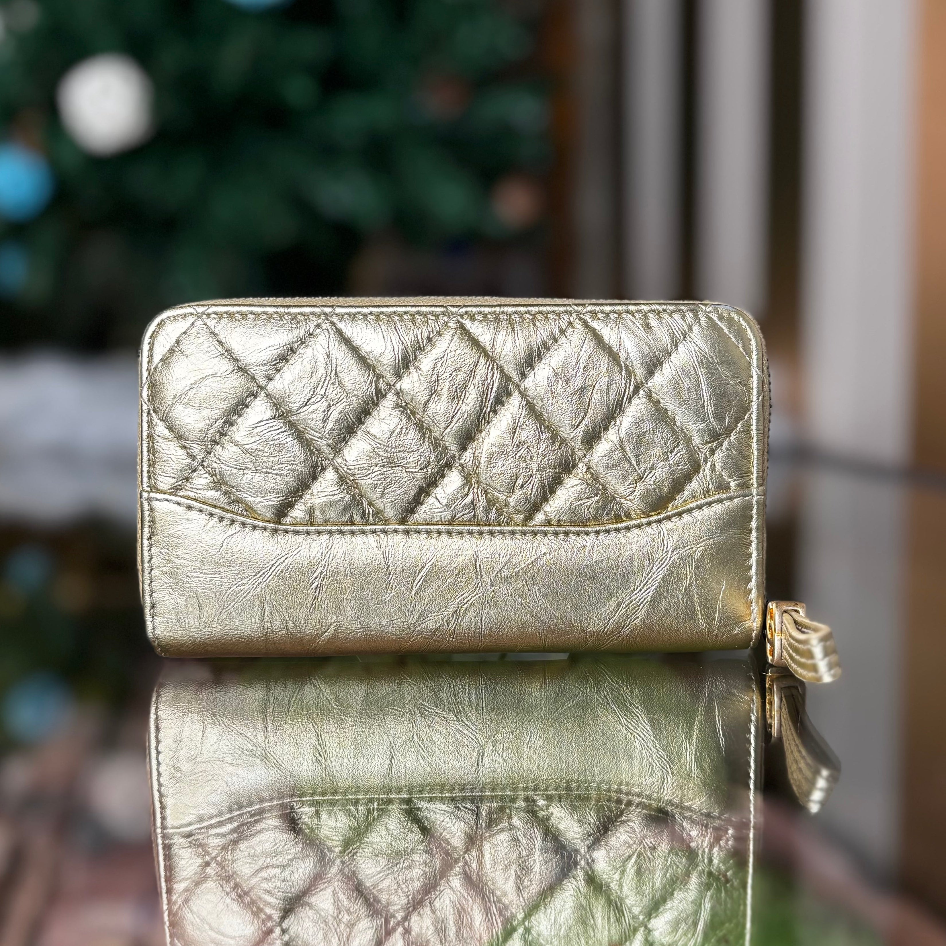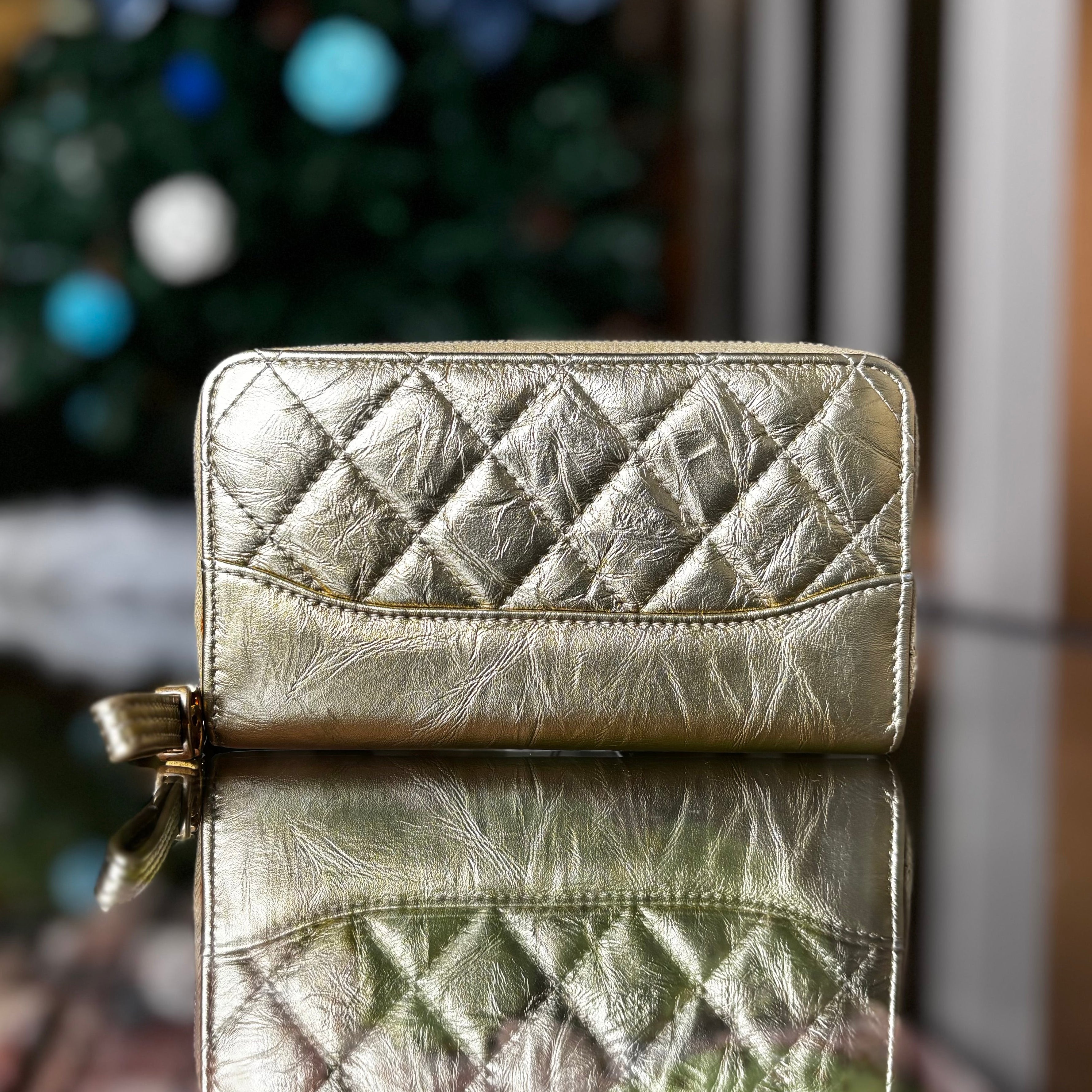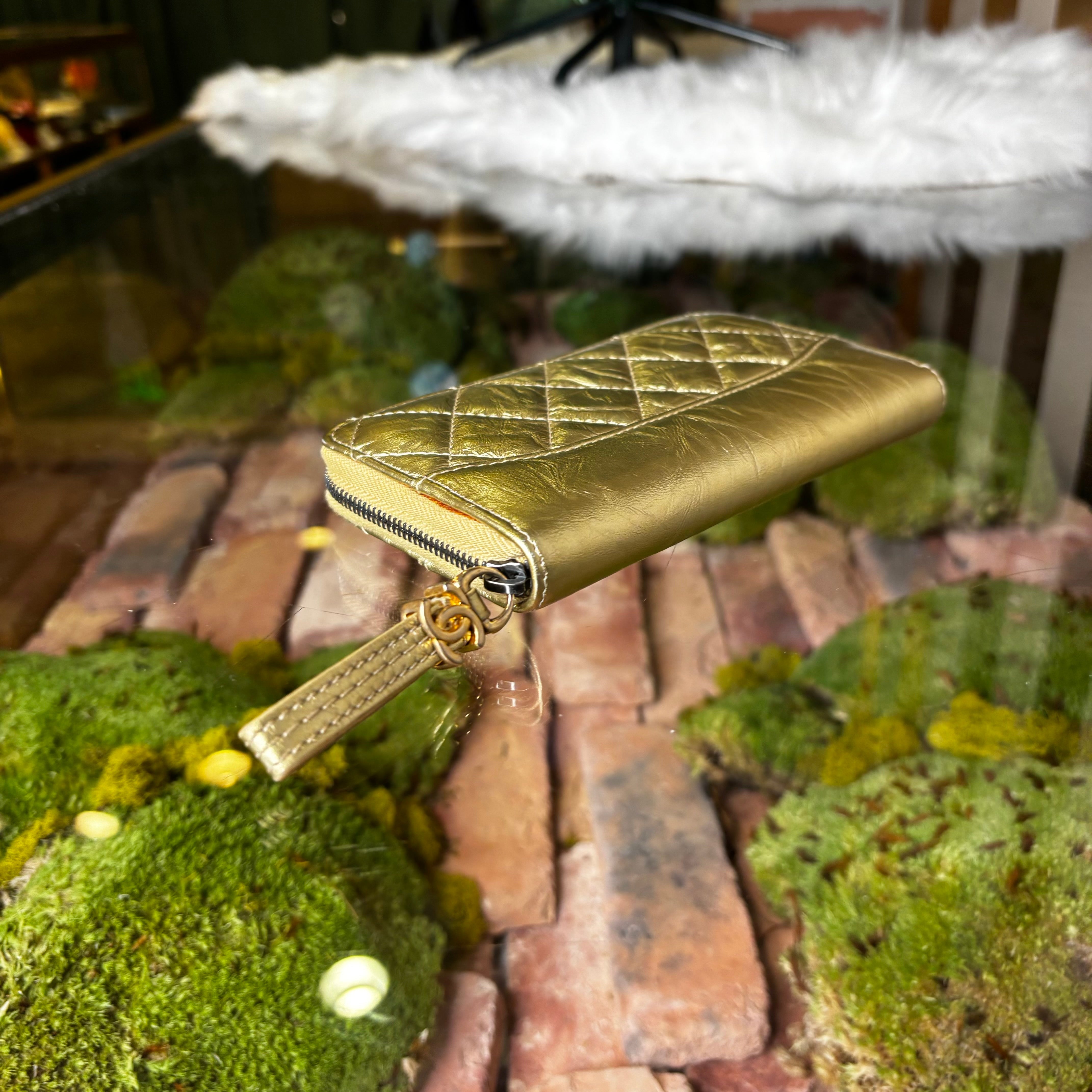CHANEL Gabrielle Small Gold Metallic Aged Calfskin Quilted Zip Around Wallet