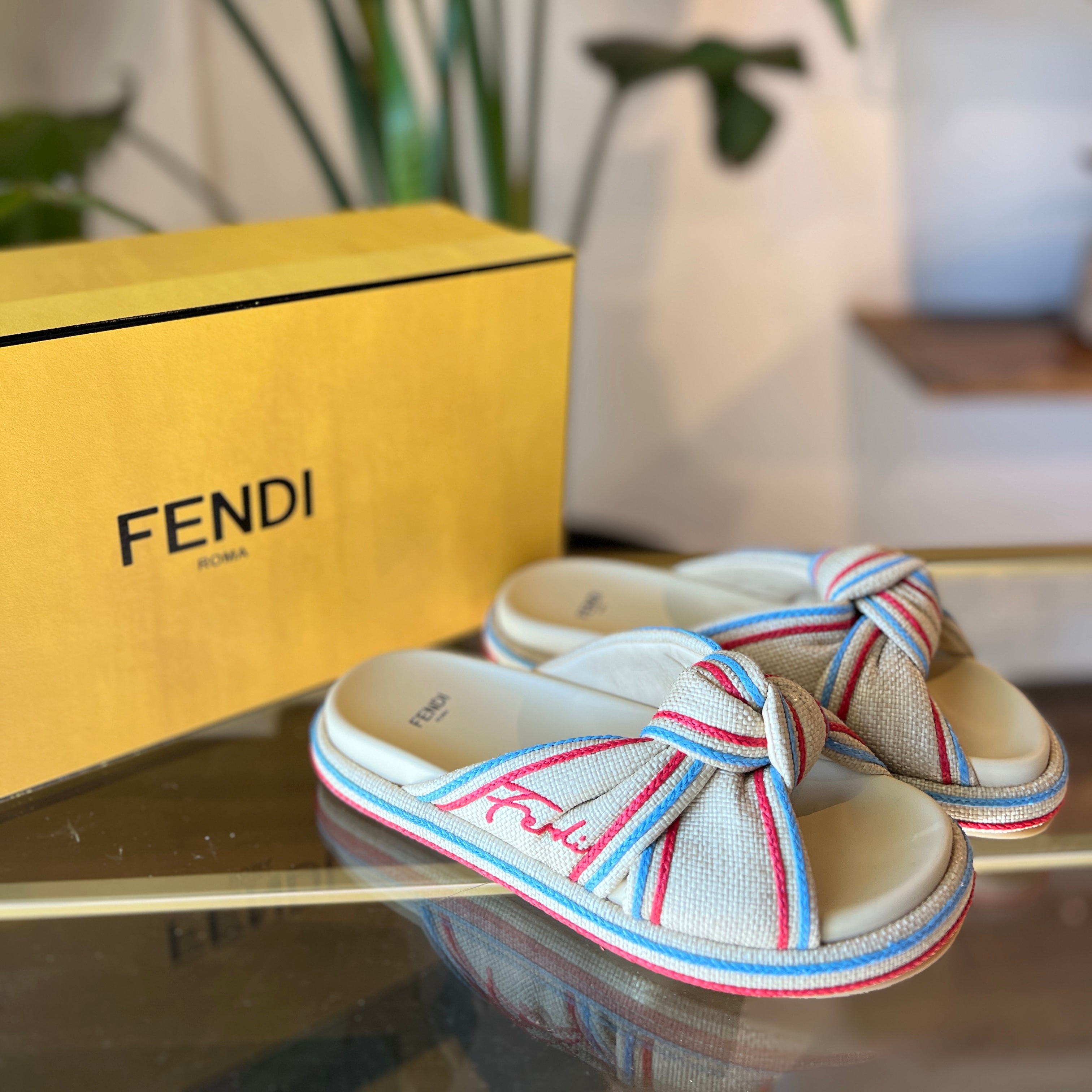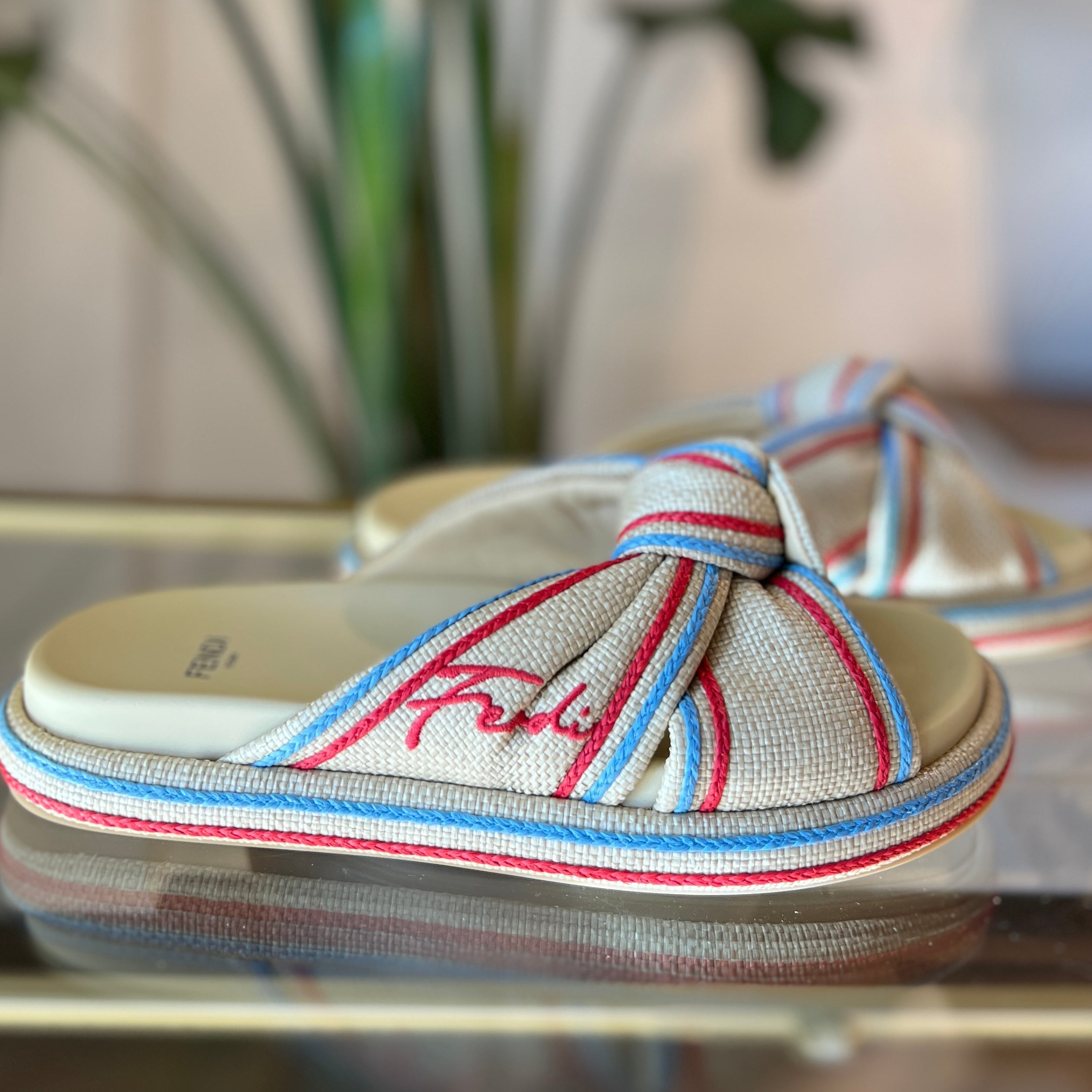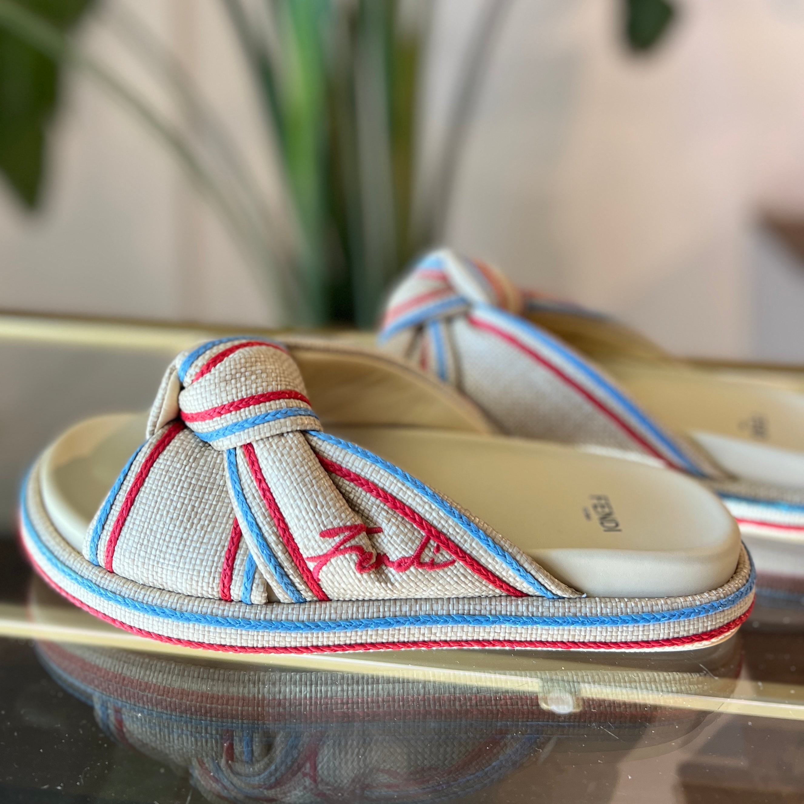 FENDI Raffia Embroidered Knot Sandals SZ 36(6US)