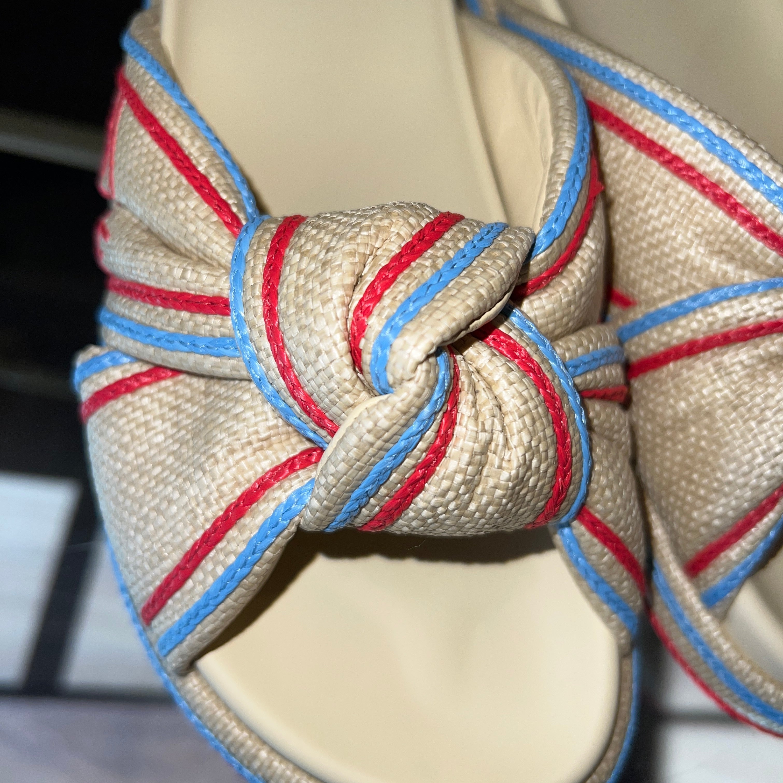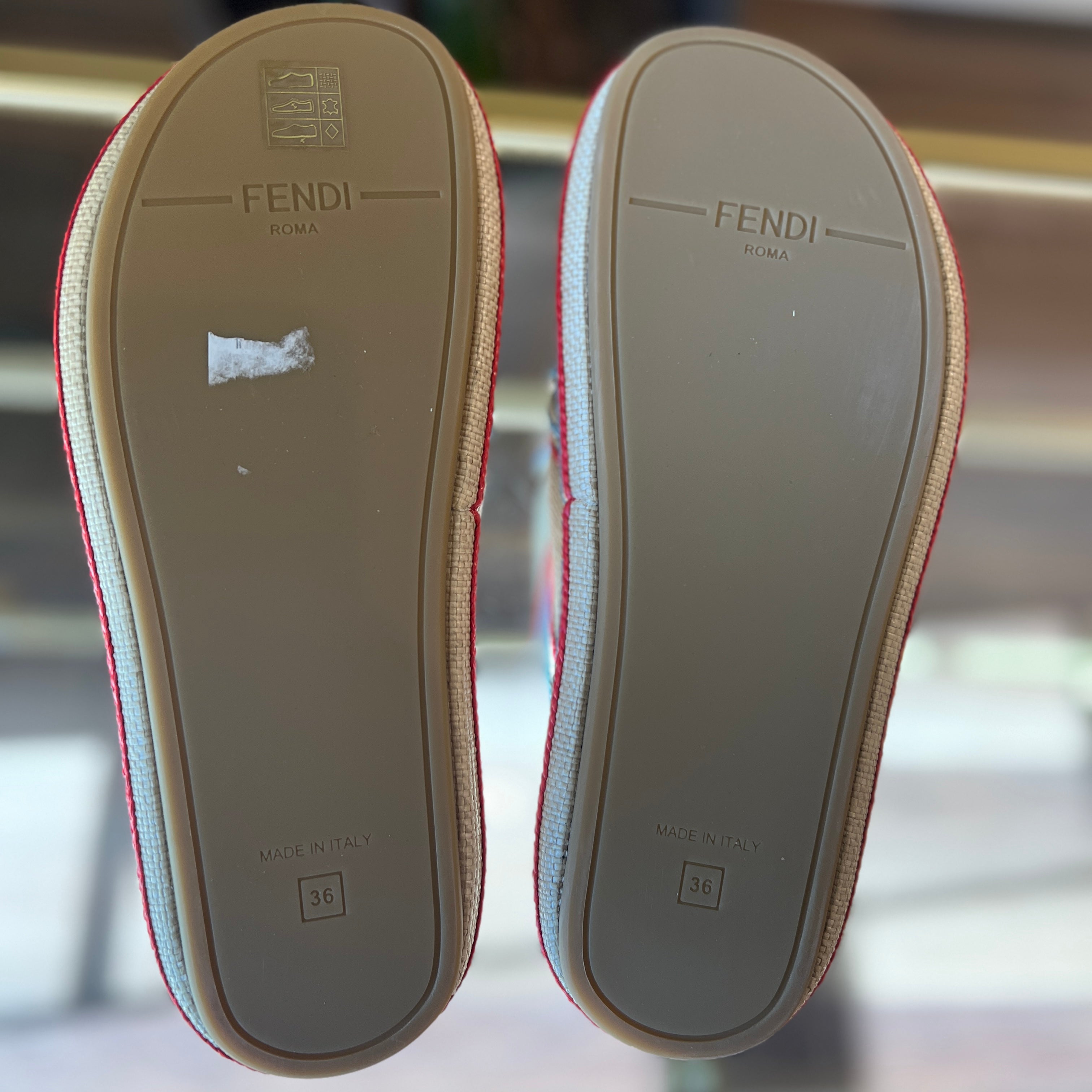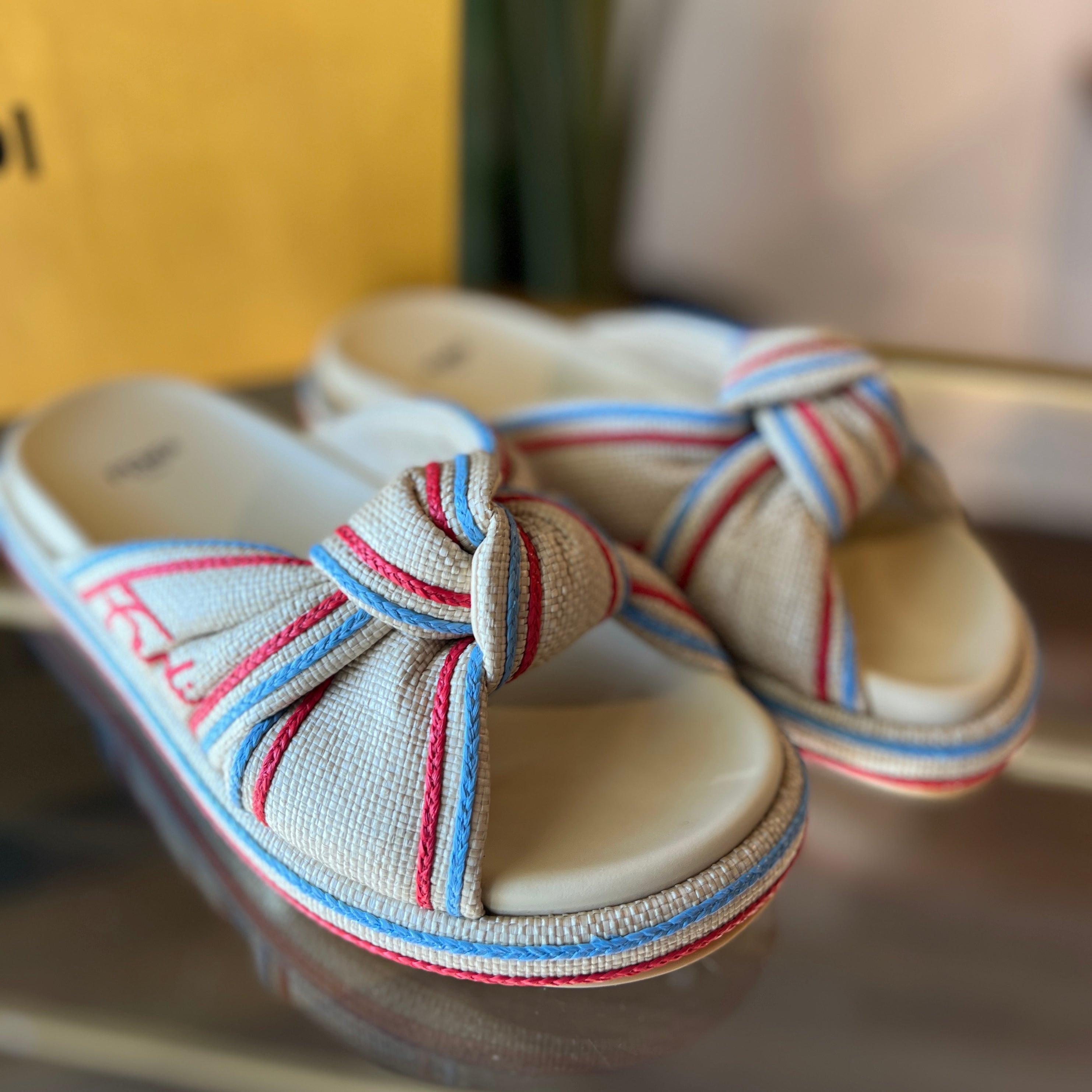 FENDI Raffia Embroidered Knot Sandals SZ 36(6US)
