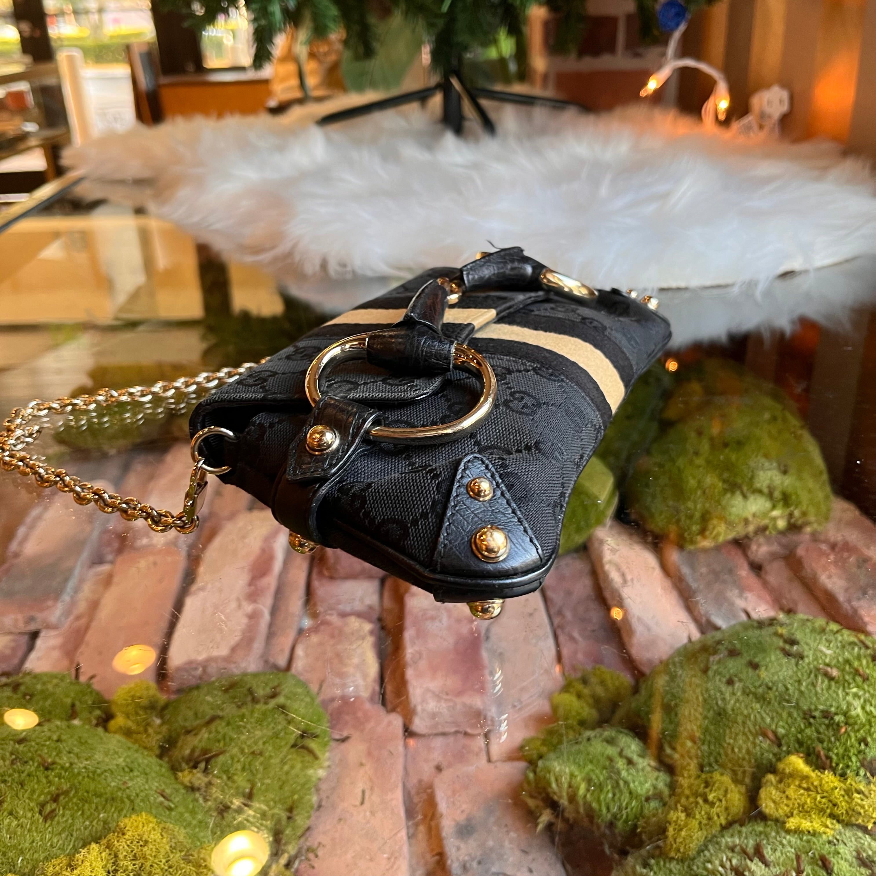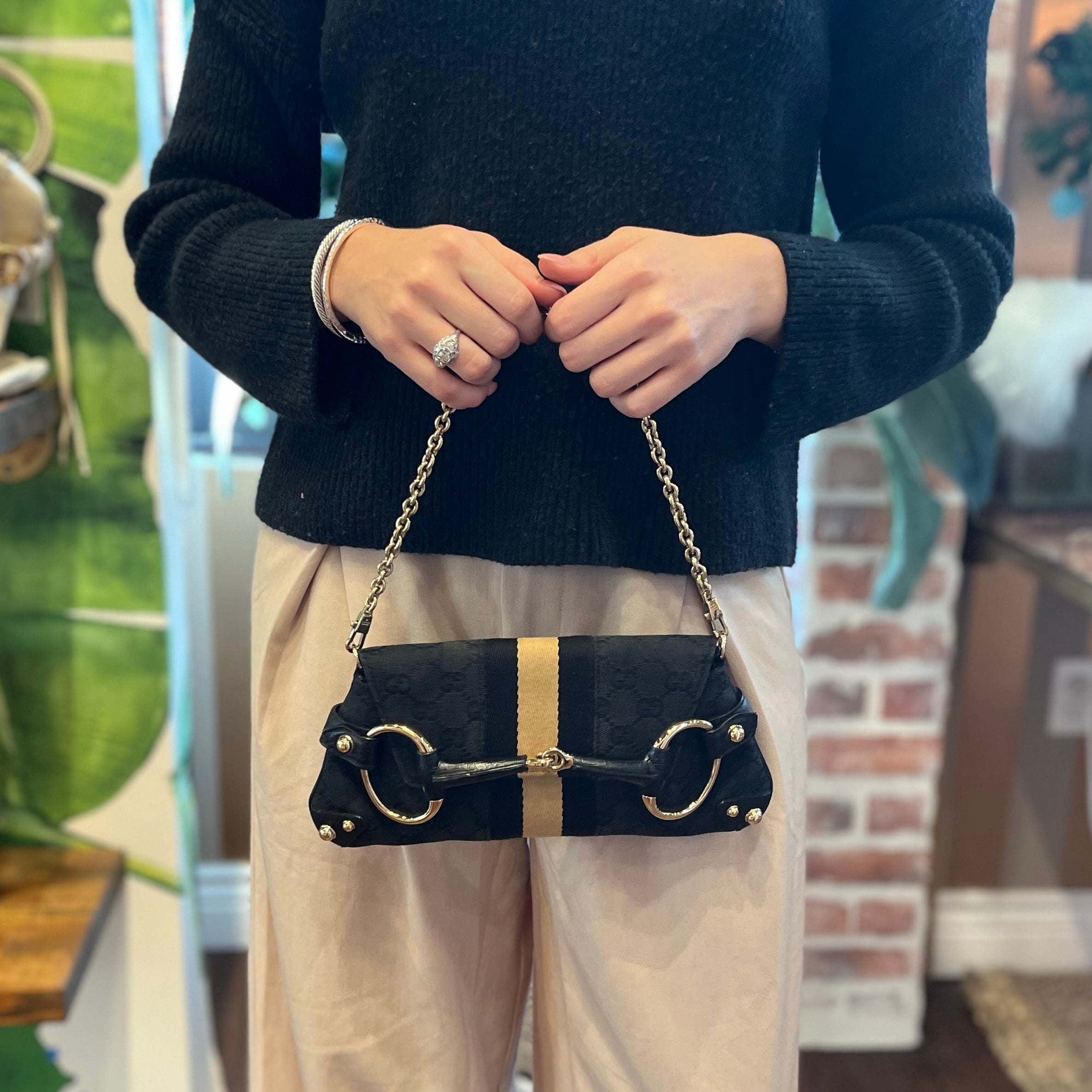 GUCCI Horsebit Pochette Black GG Canvas Shoulder Bag