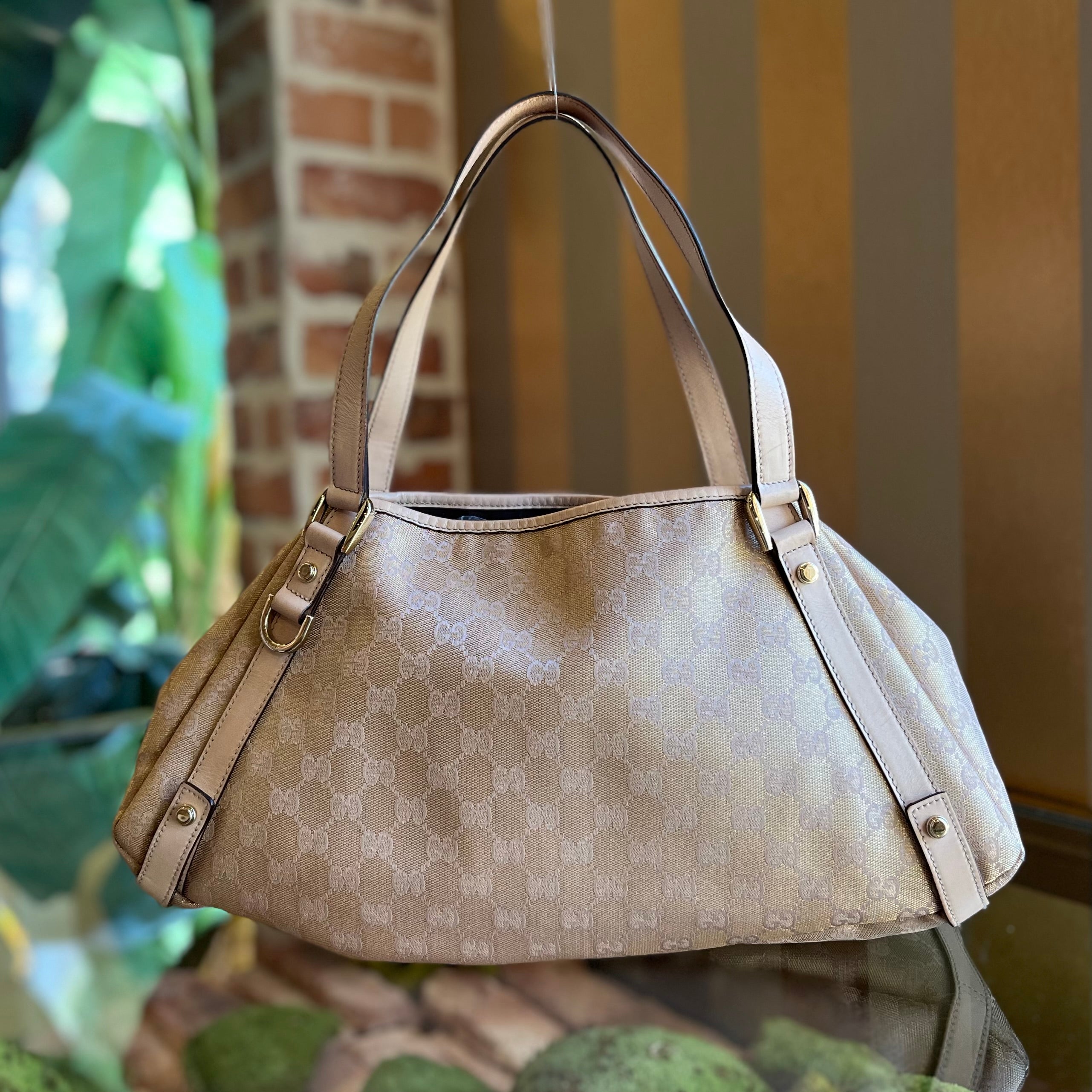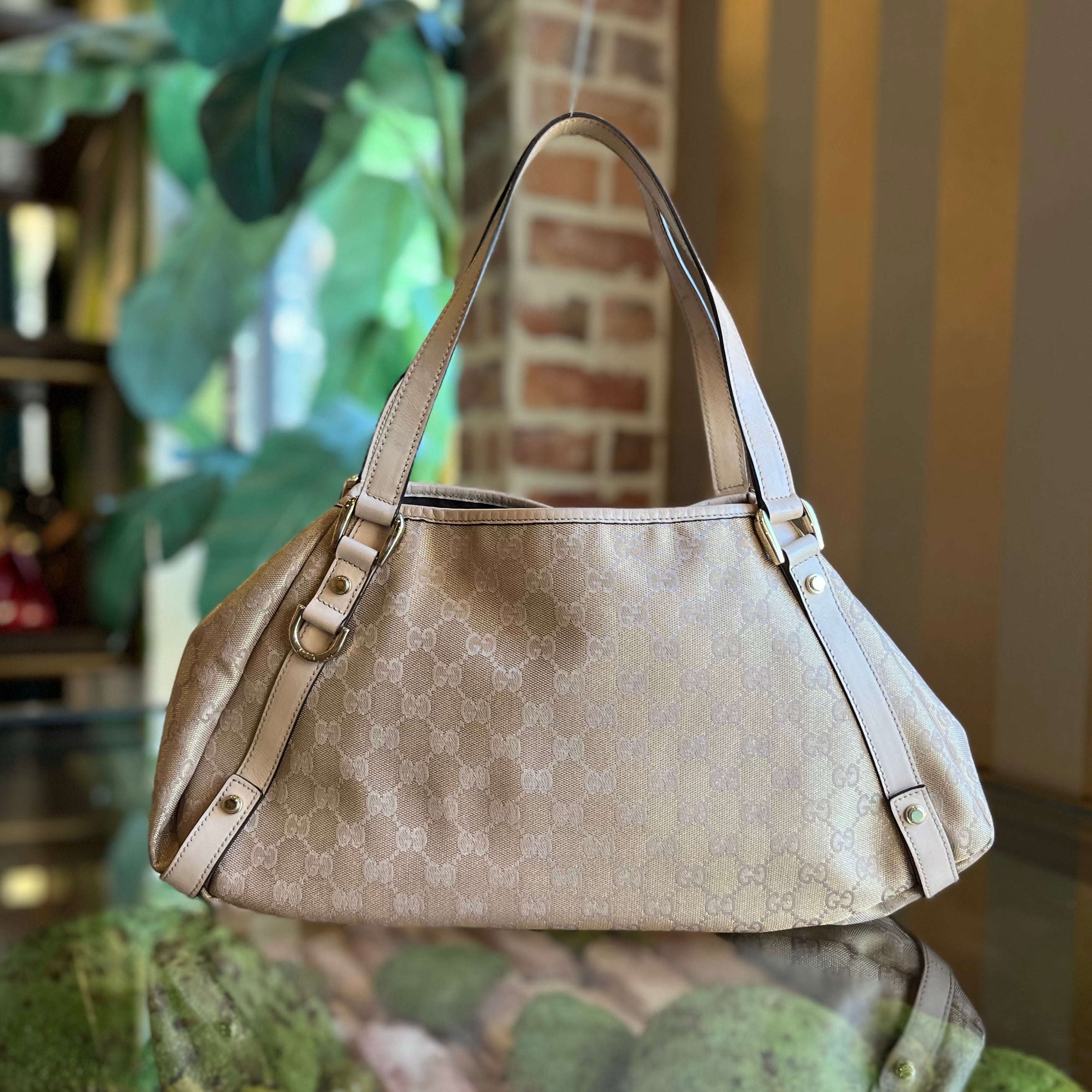 GUCCI Abby Pink Gold Metallic Canvas Shoulder Bag