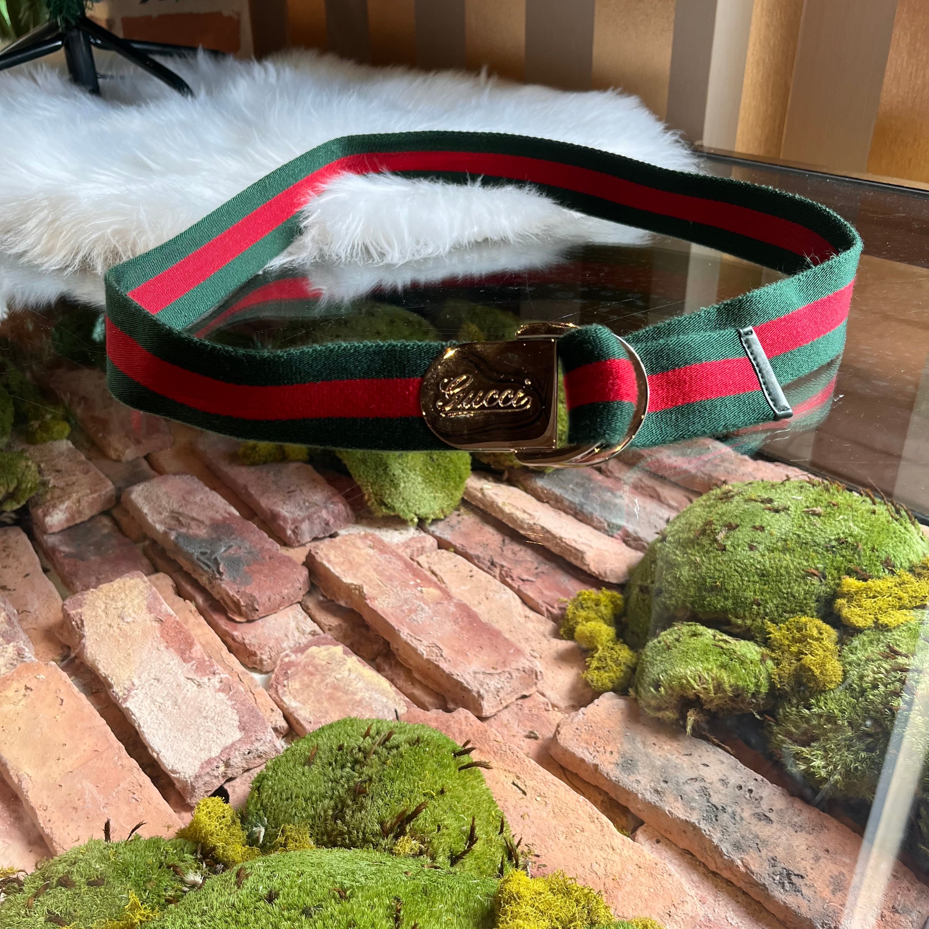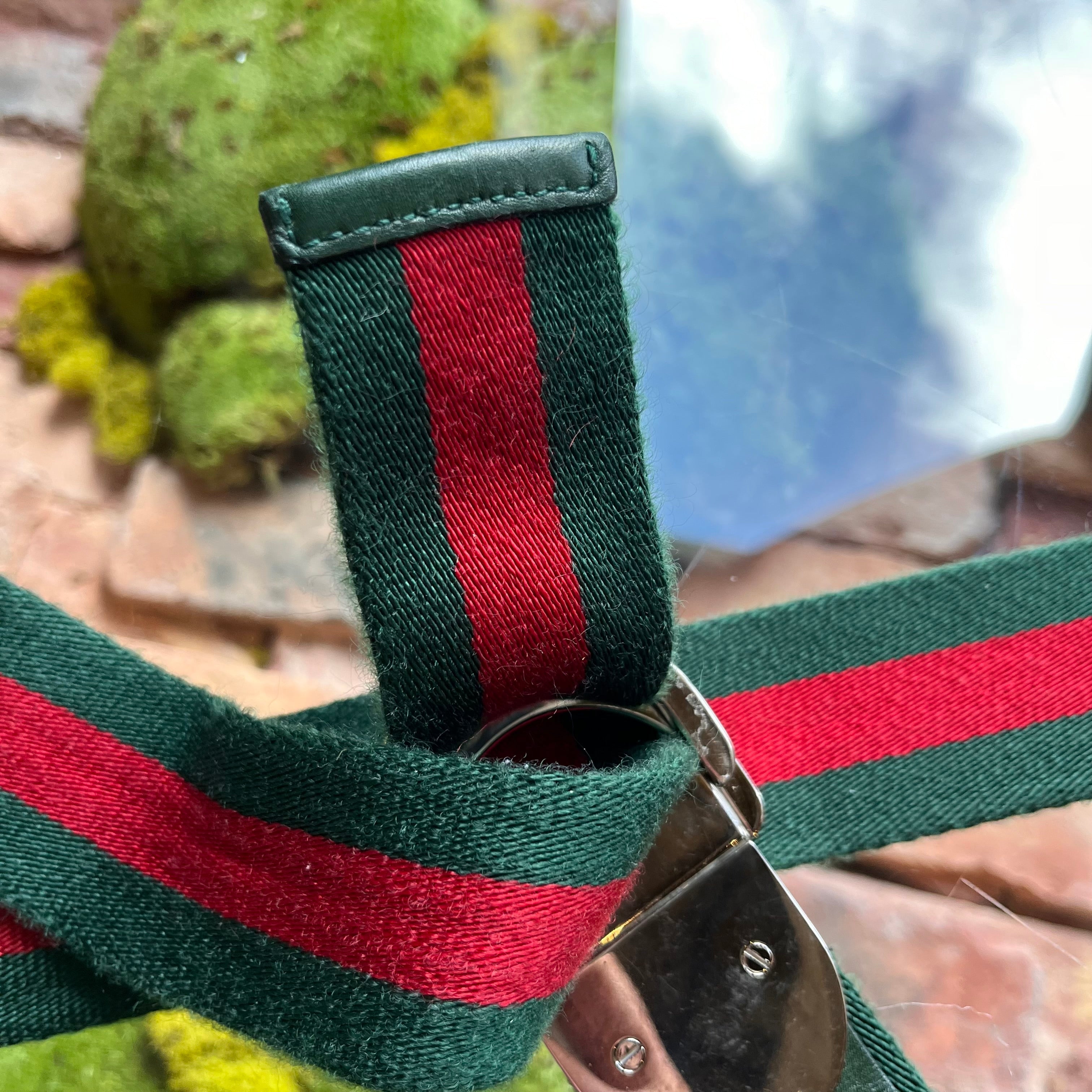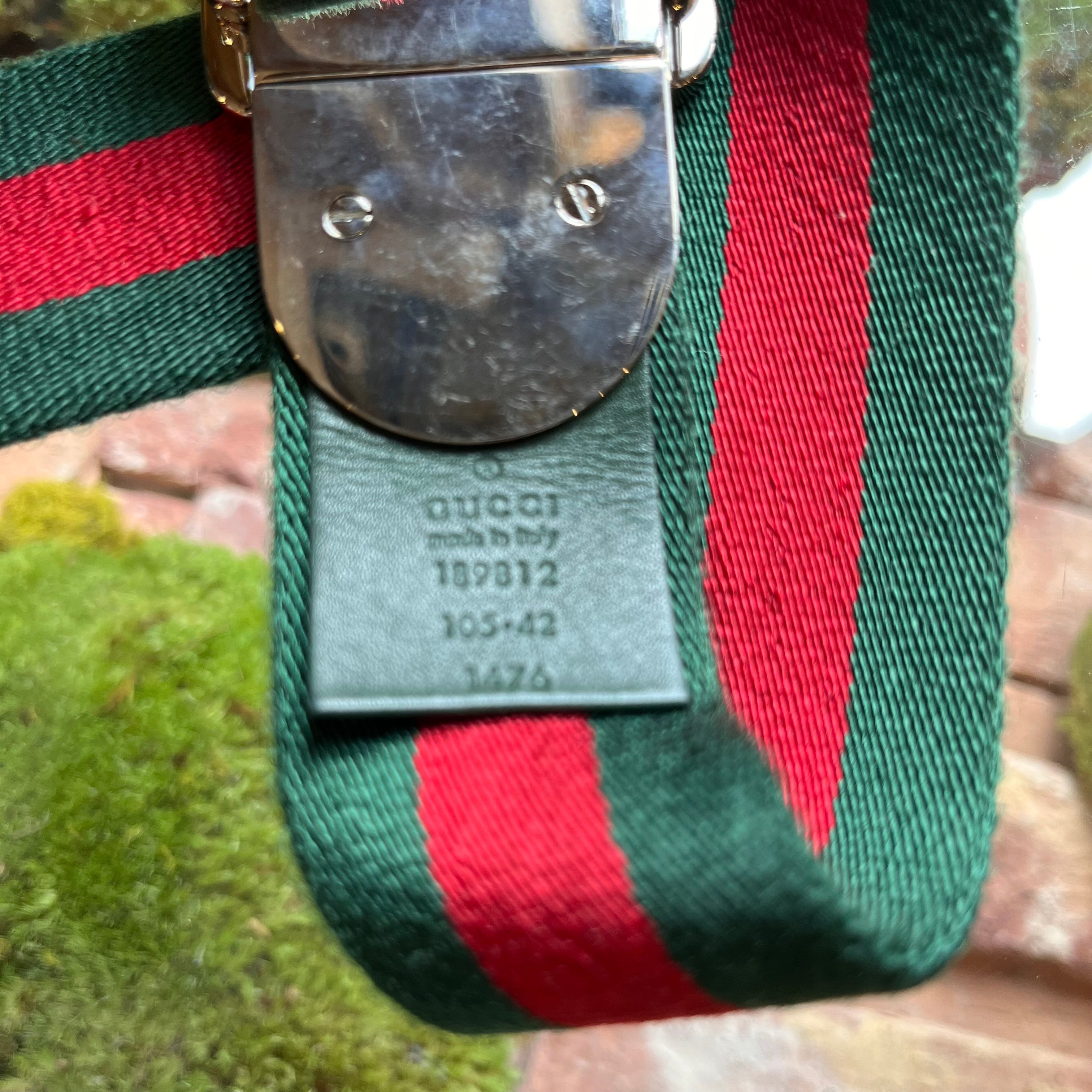 GUCCI Web Belt Engraved D Ring Stripe Red Green Logo