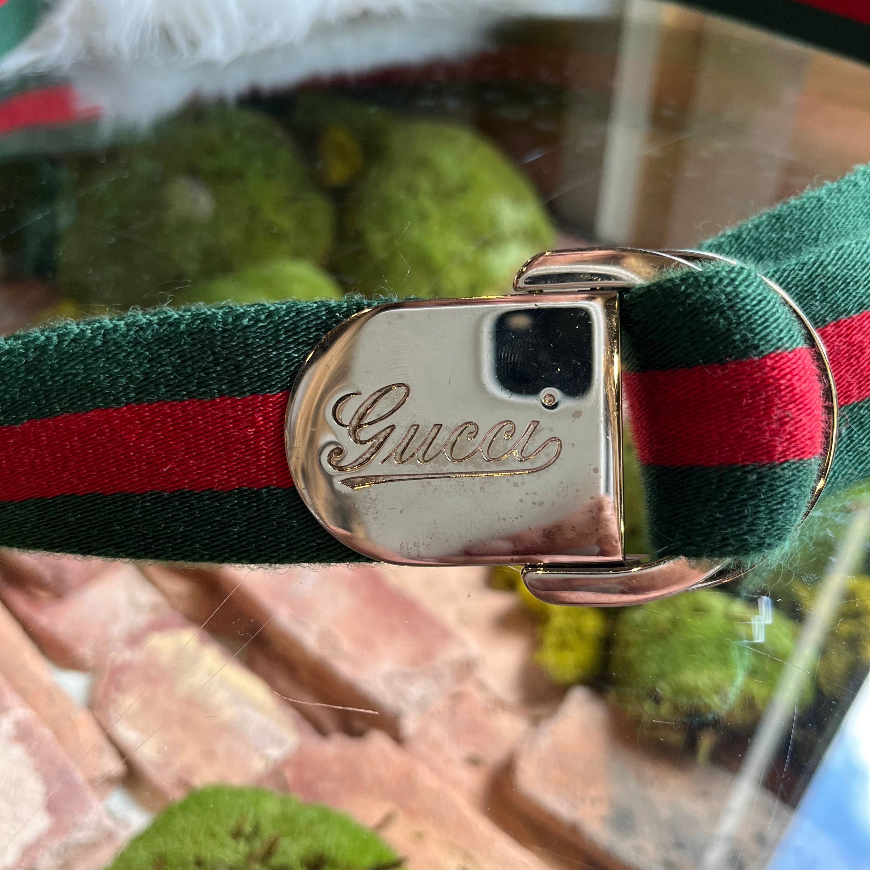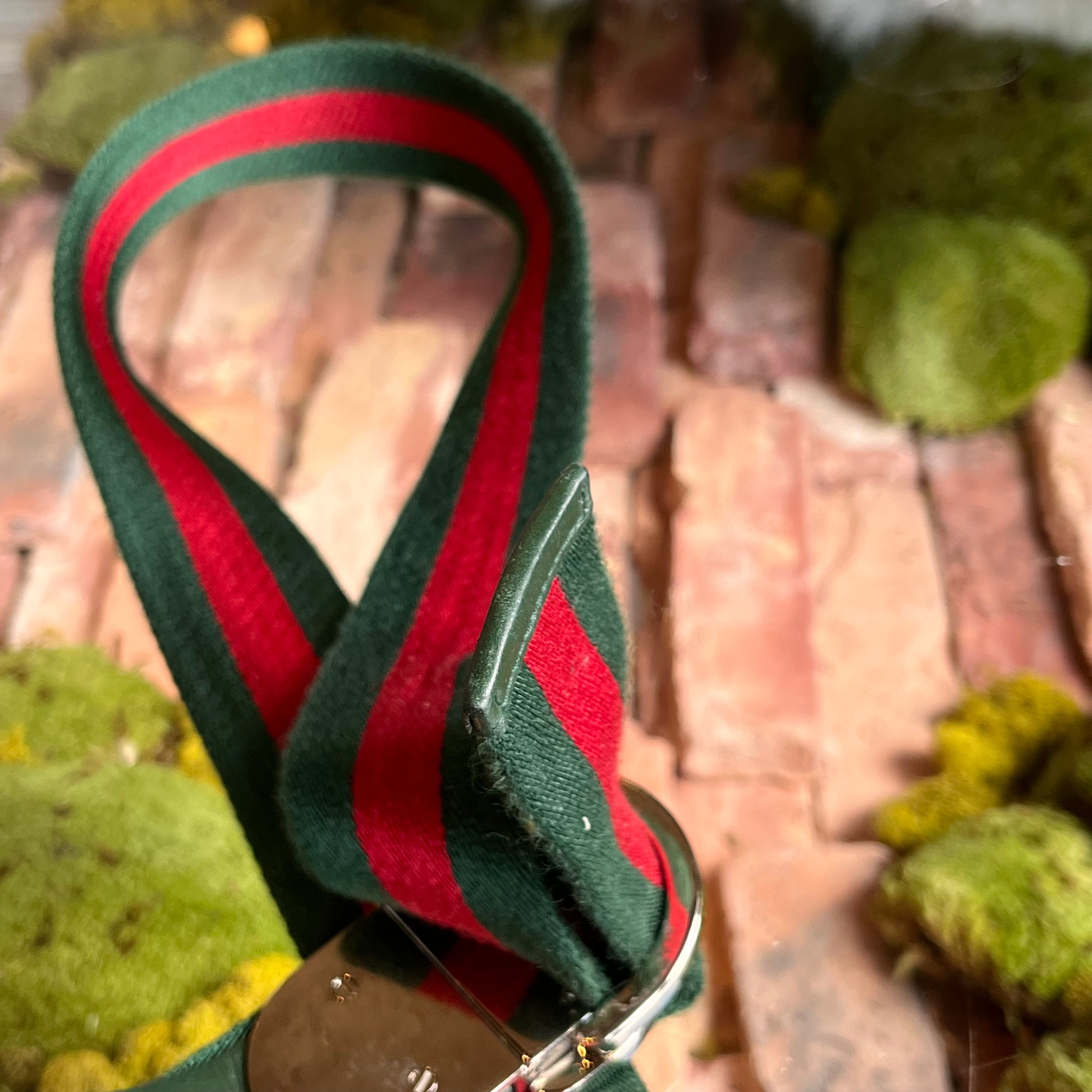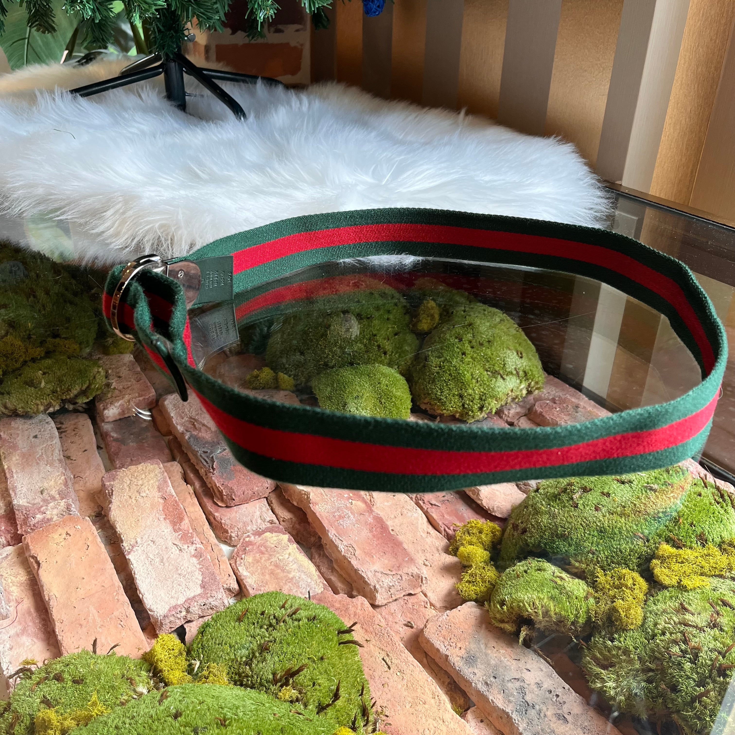 GUCCI Web Belt Engraved D Ring Stripe Red Green Logo