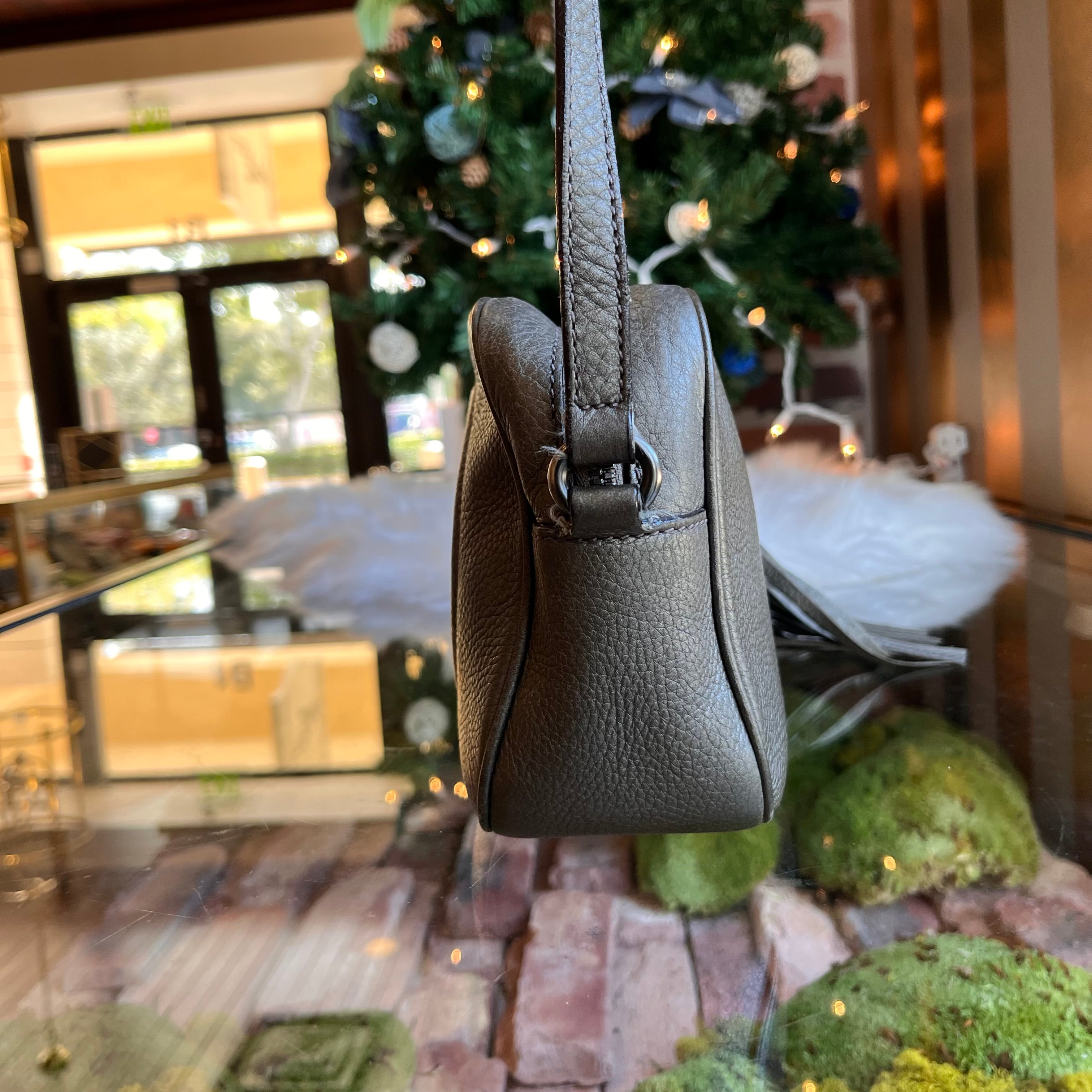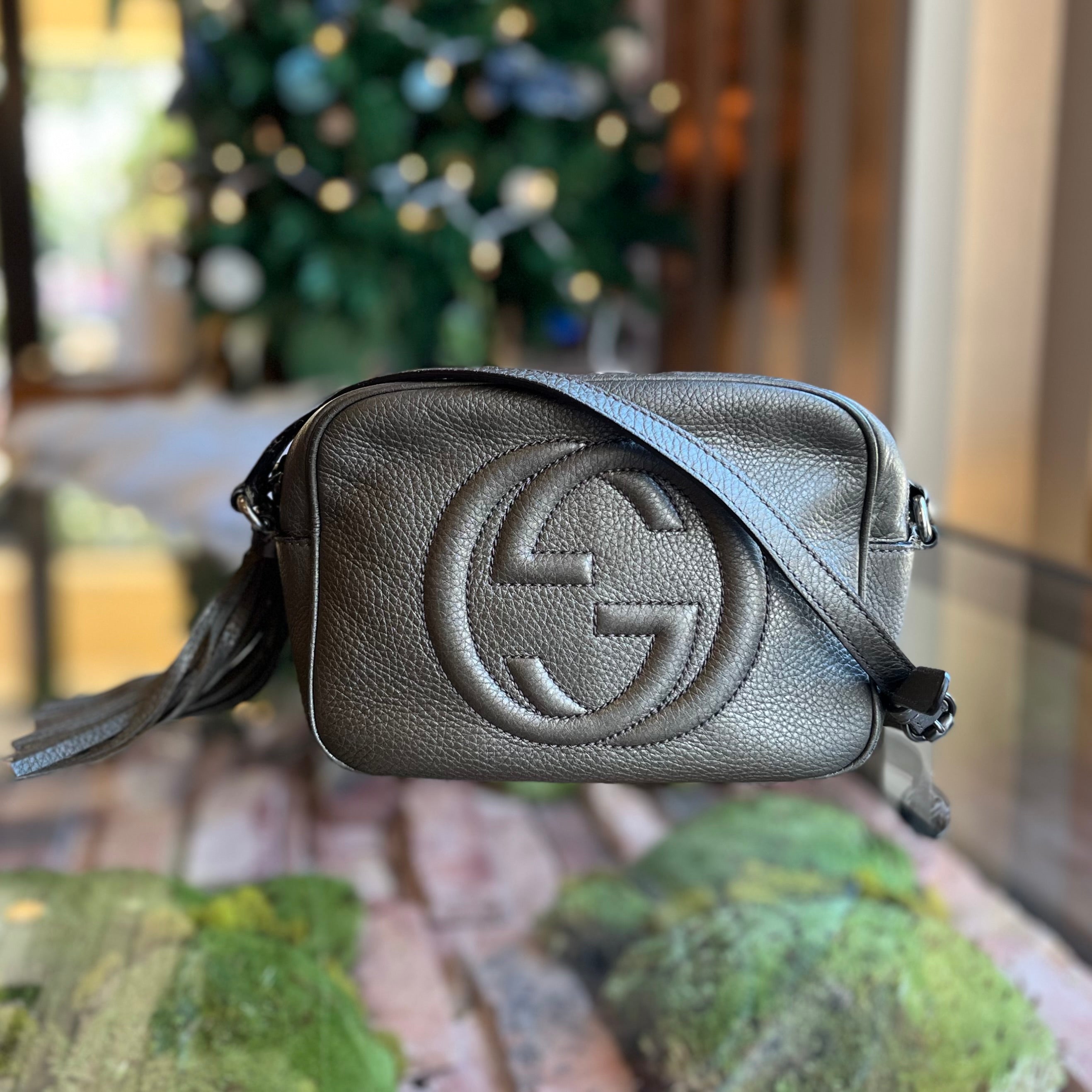 GUCCI Soho Disco Small Pewter Pebbled Leather Shoulder Bag