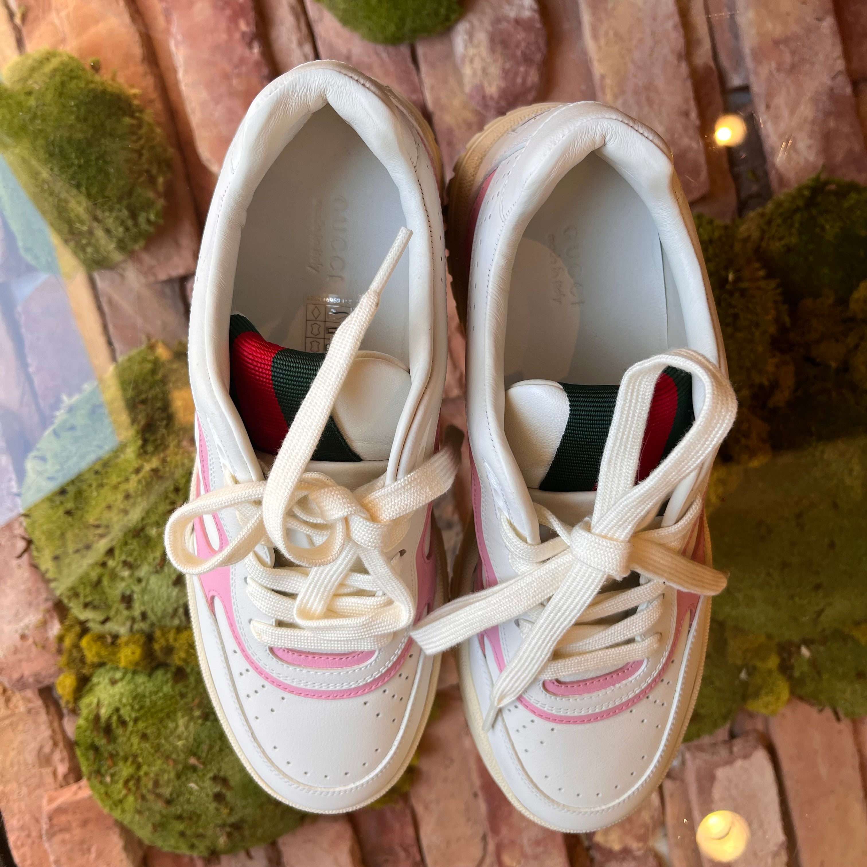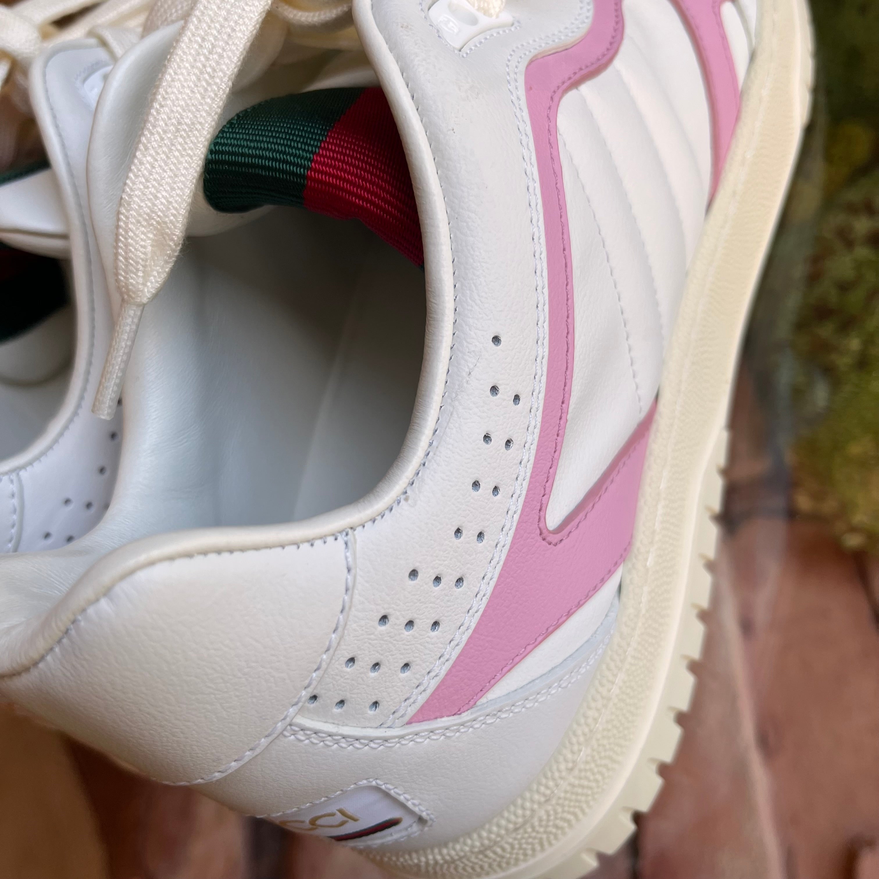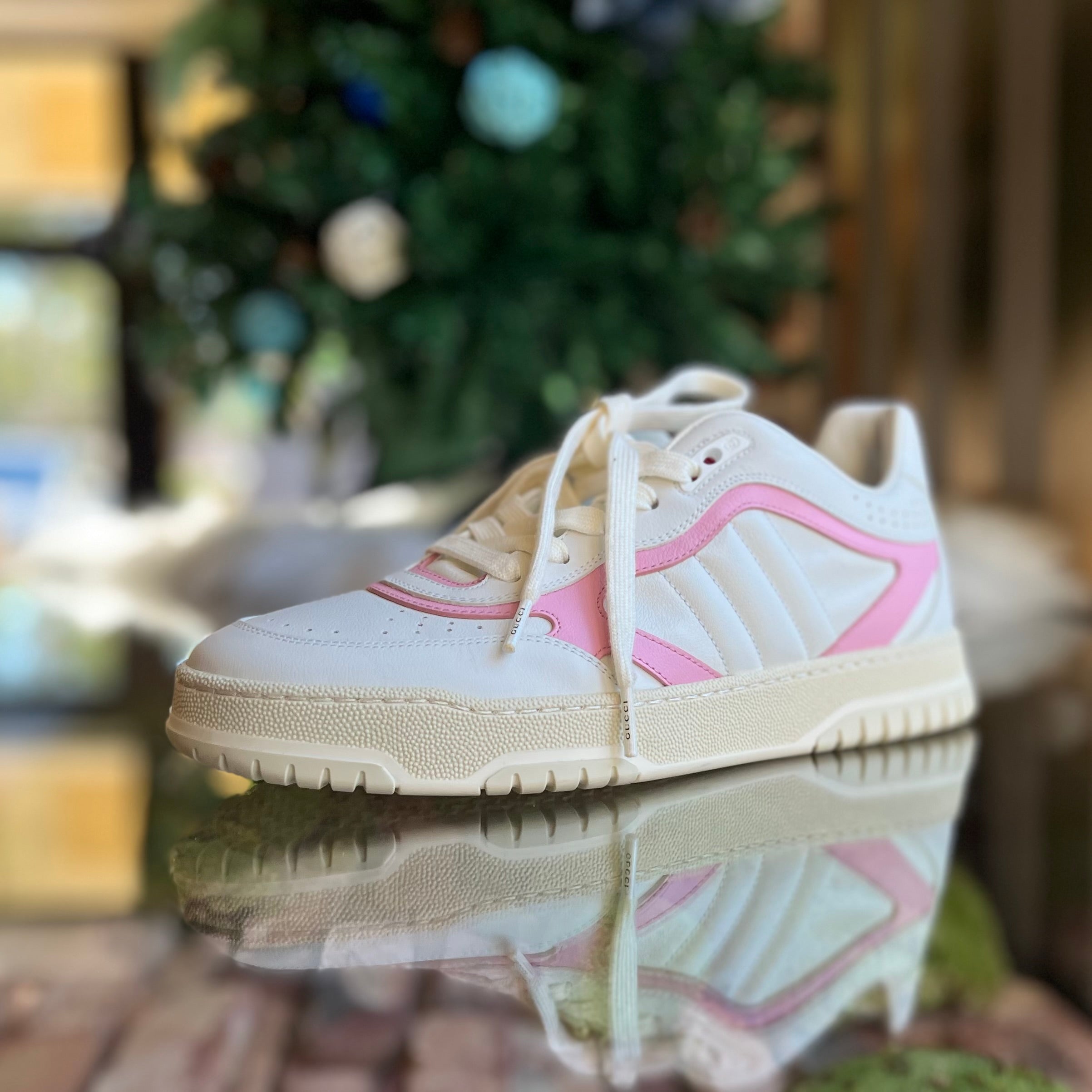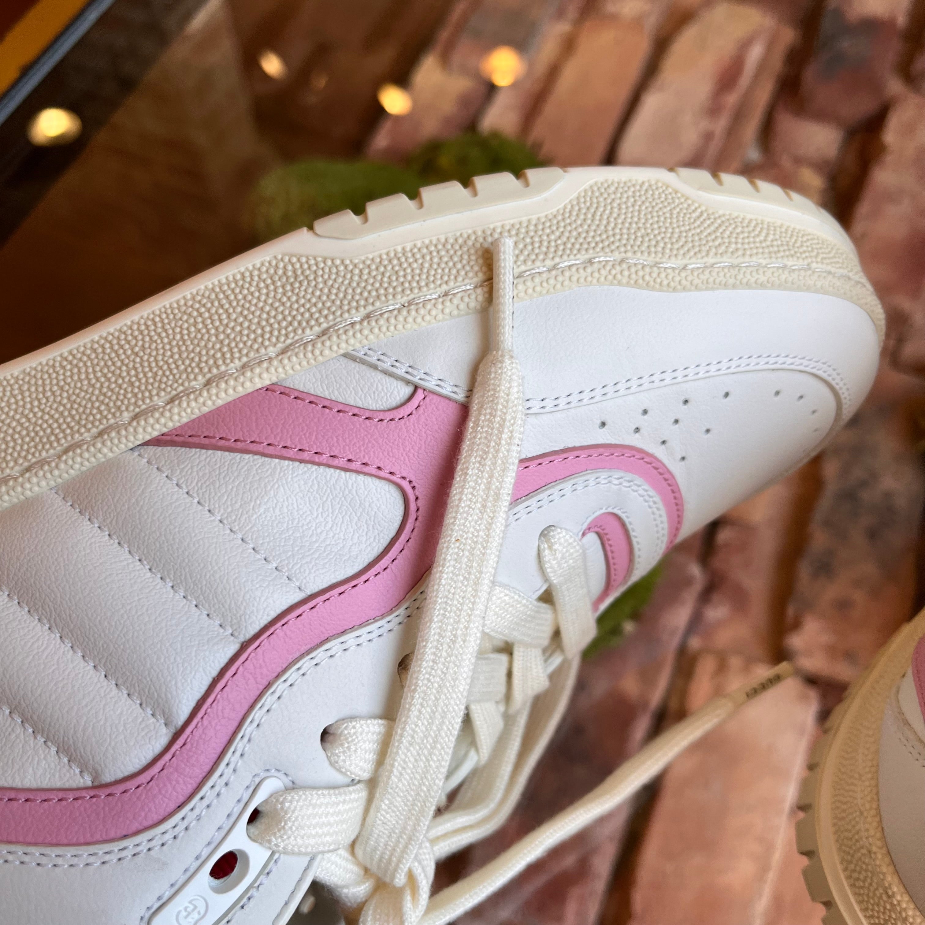 GUCCI White Pink Calfskin Womens Re-Web Sneakers SZ40(10US)